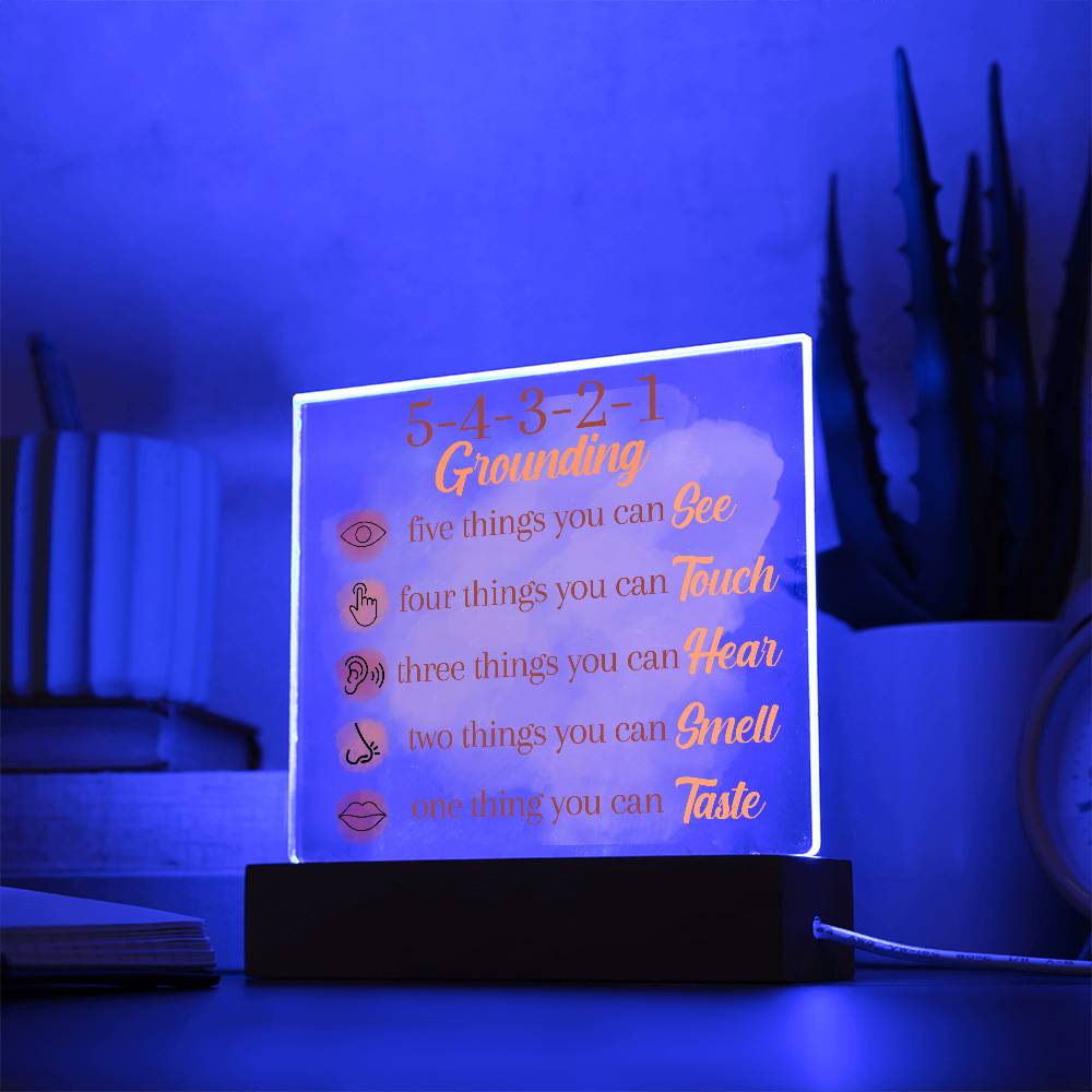 Makes a perfect mental health gift or a gift for those who need a little bit of practice for grounding themselves in daily life. Also makes a perfect item for therapist room decor or school counsellor decor. Add some pizazz when you upgrade to the LED wooden base! Your plaque is made from high quality acrylic and comes with a professionally printed design. Product specifications: