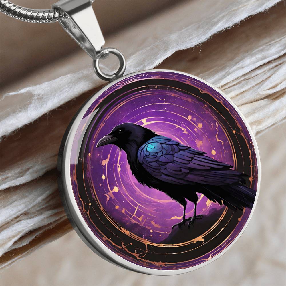 Purple Raven Pendant | Black Bird Jewelry | Crow Necklace | Spooky Symbolic Gift | Gifts for Her | Goth Necklace