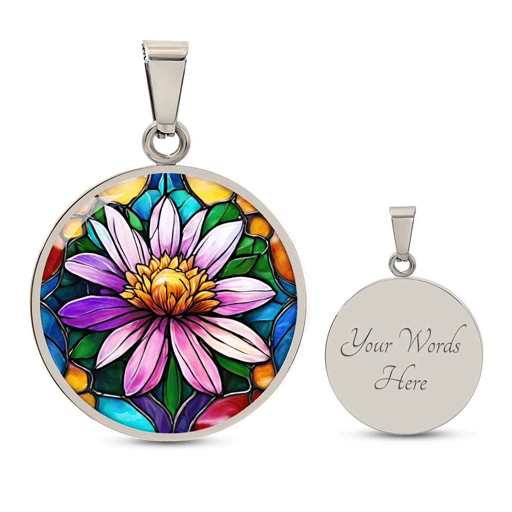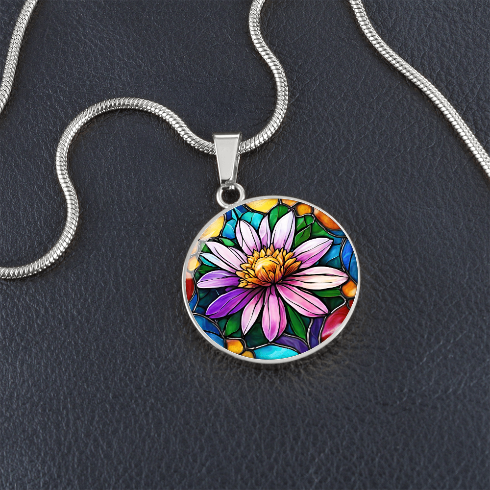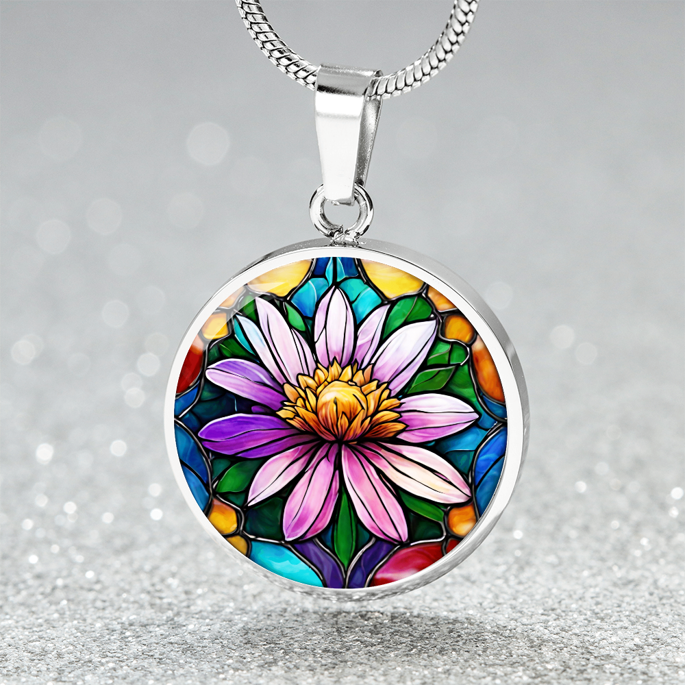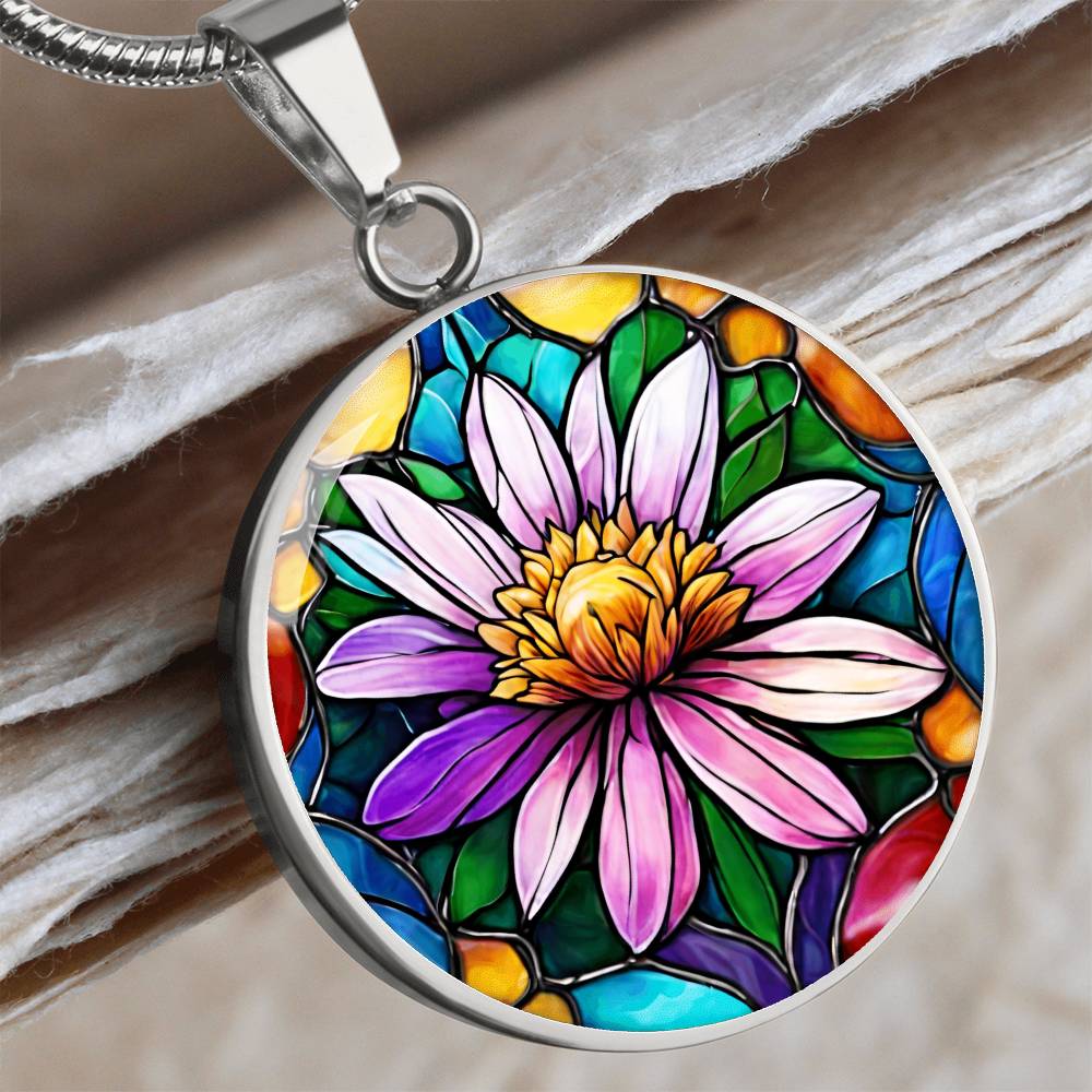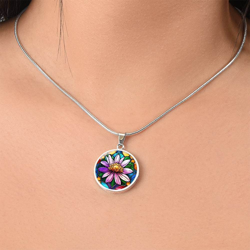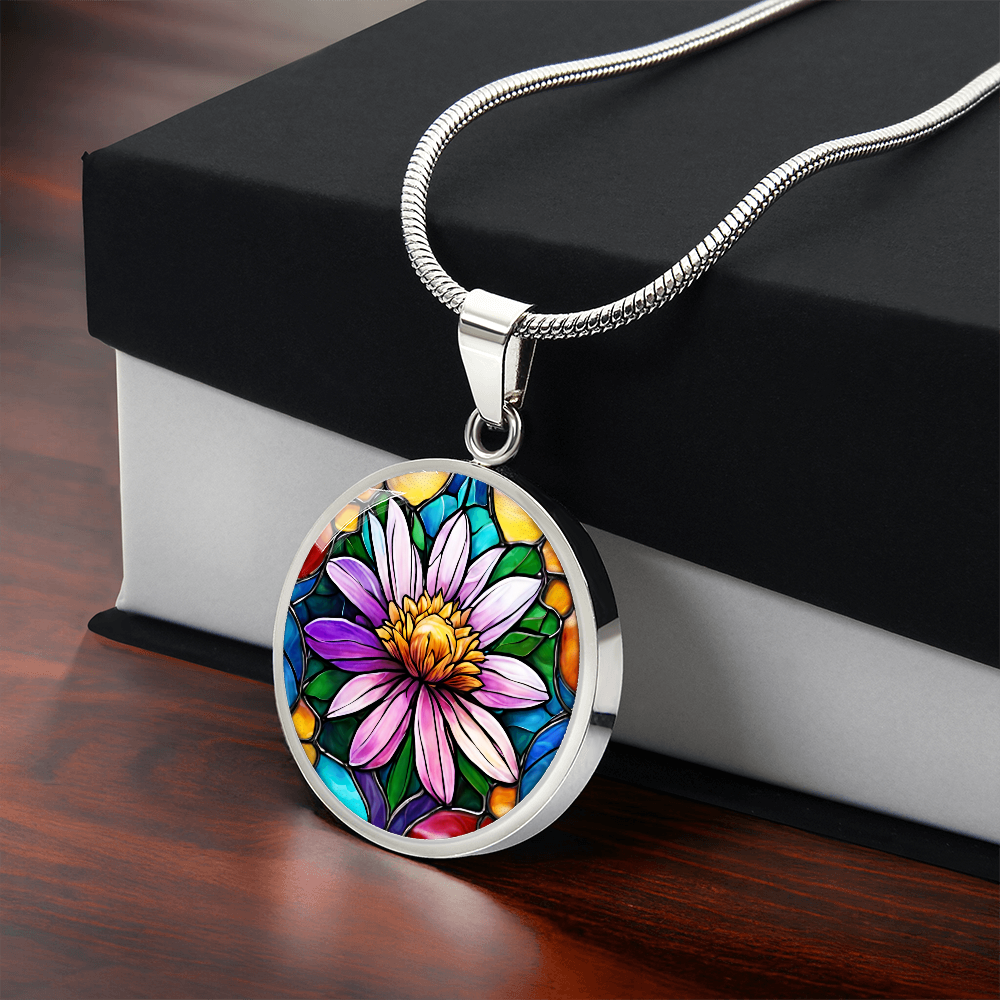 Birth Month Flower Necklace | Aster Birth Flower Necklace | September Birth Flower Necklace | Stained Glass Personalized Pendant Necklace