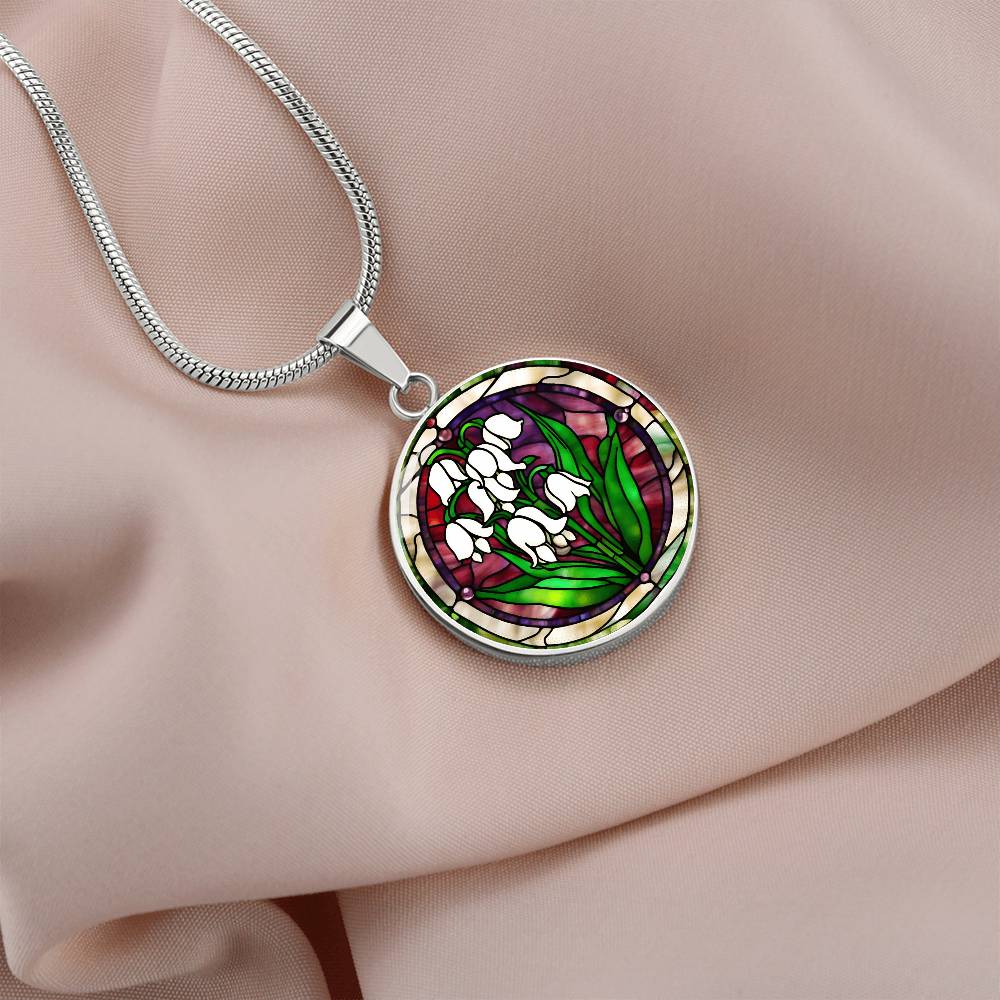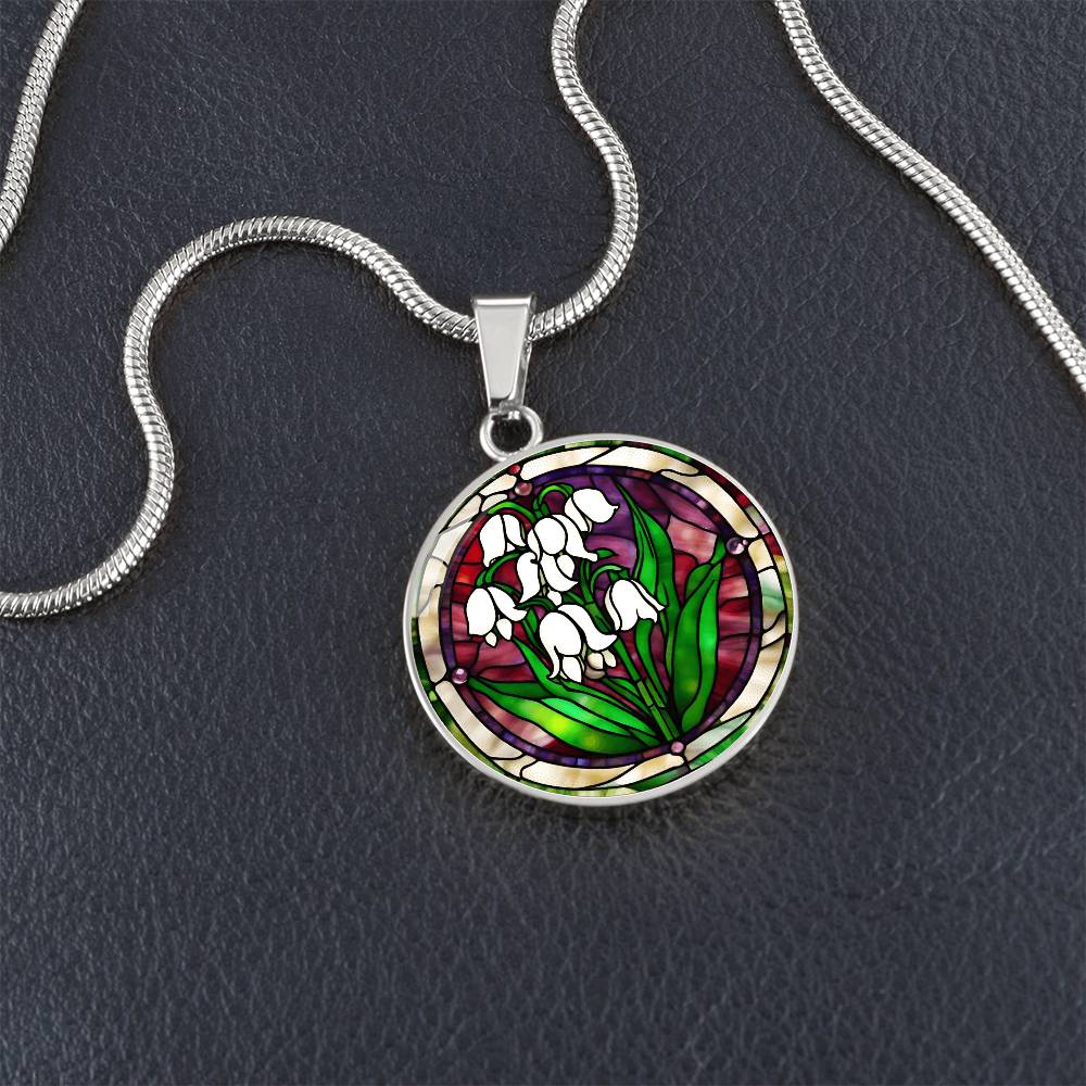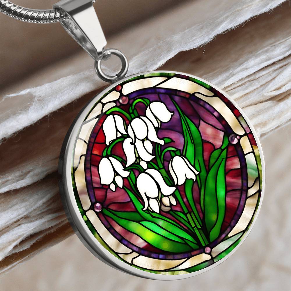 Birth Month Flower Necklace | Lily of the Valley Birth Flower Necklace | May Birth Flower Necklace | Stained Glass Personalized Pendant Necklace