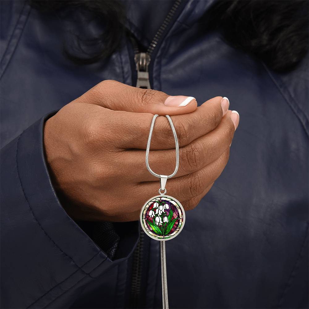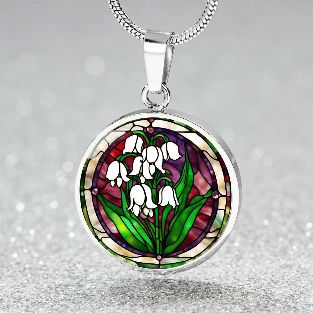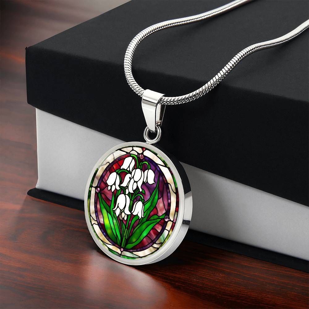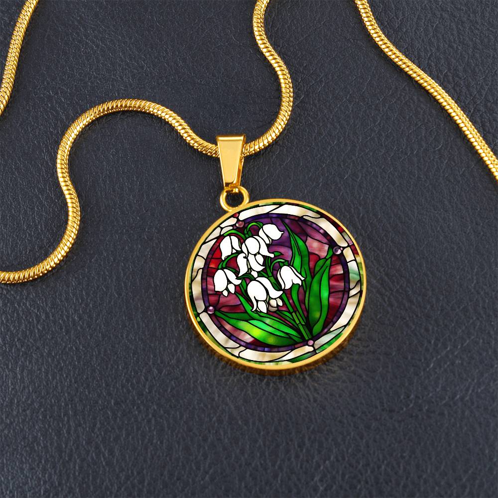 Birth Month Flower Necklace | Lily of the Valley Birth Flower Necklace | May Birth Flower Necklace | Stained Glass Personalized Pendant Necklace