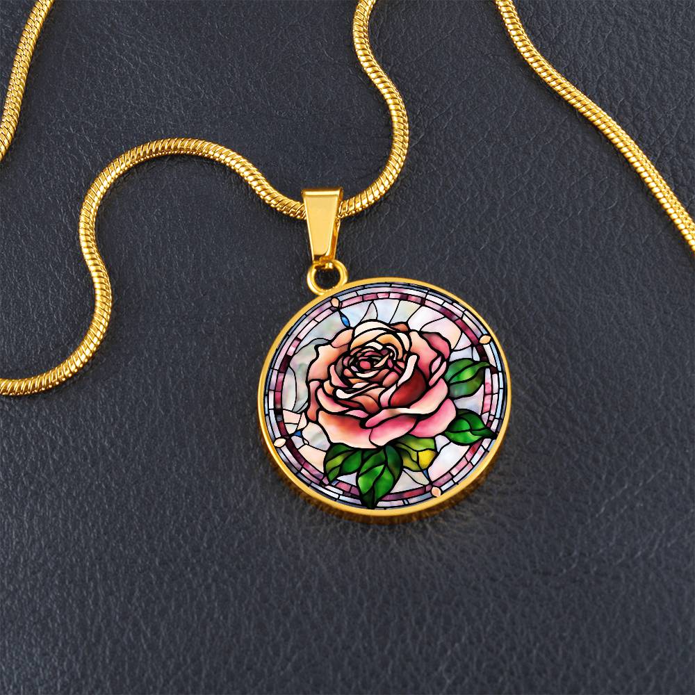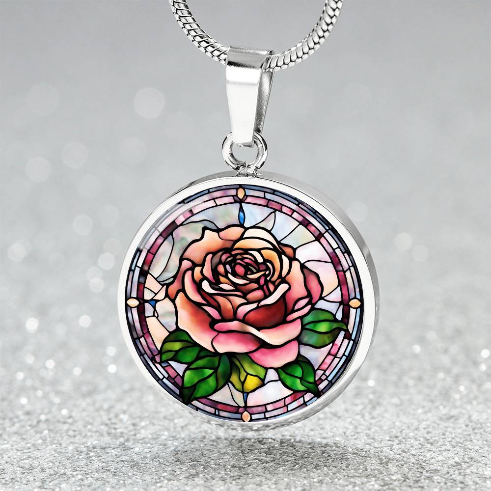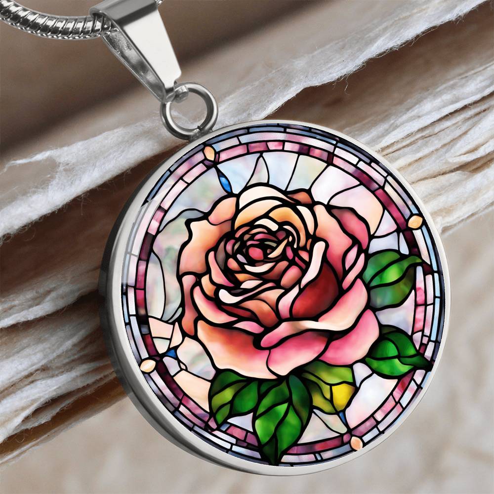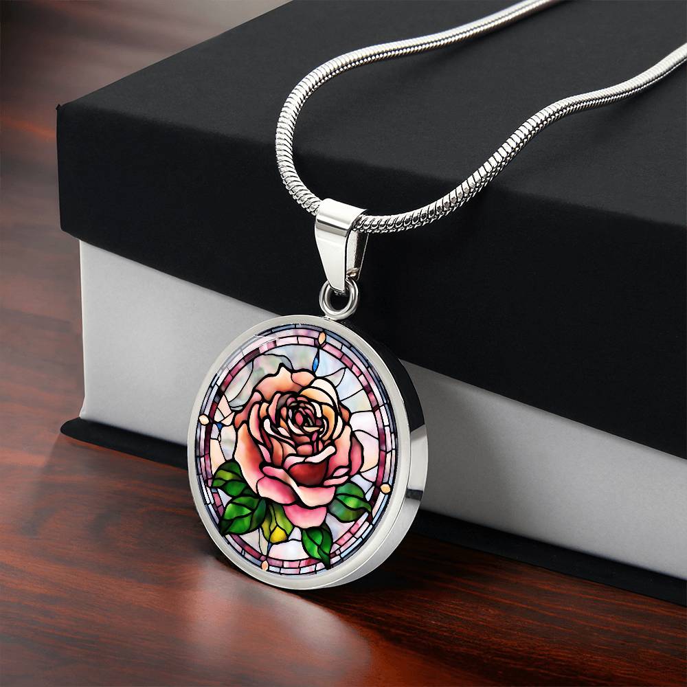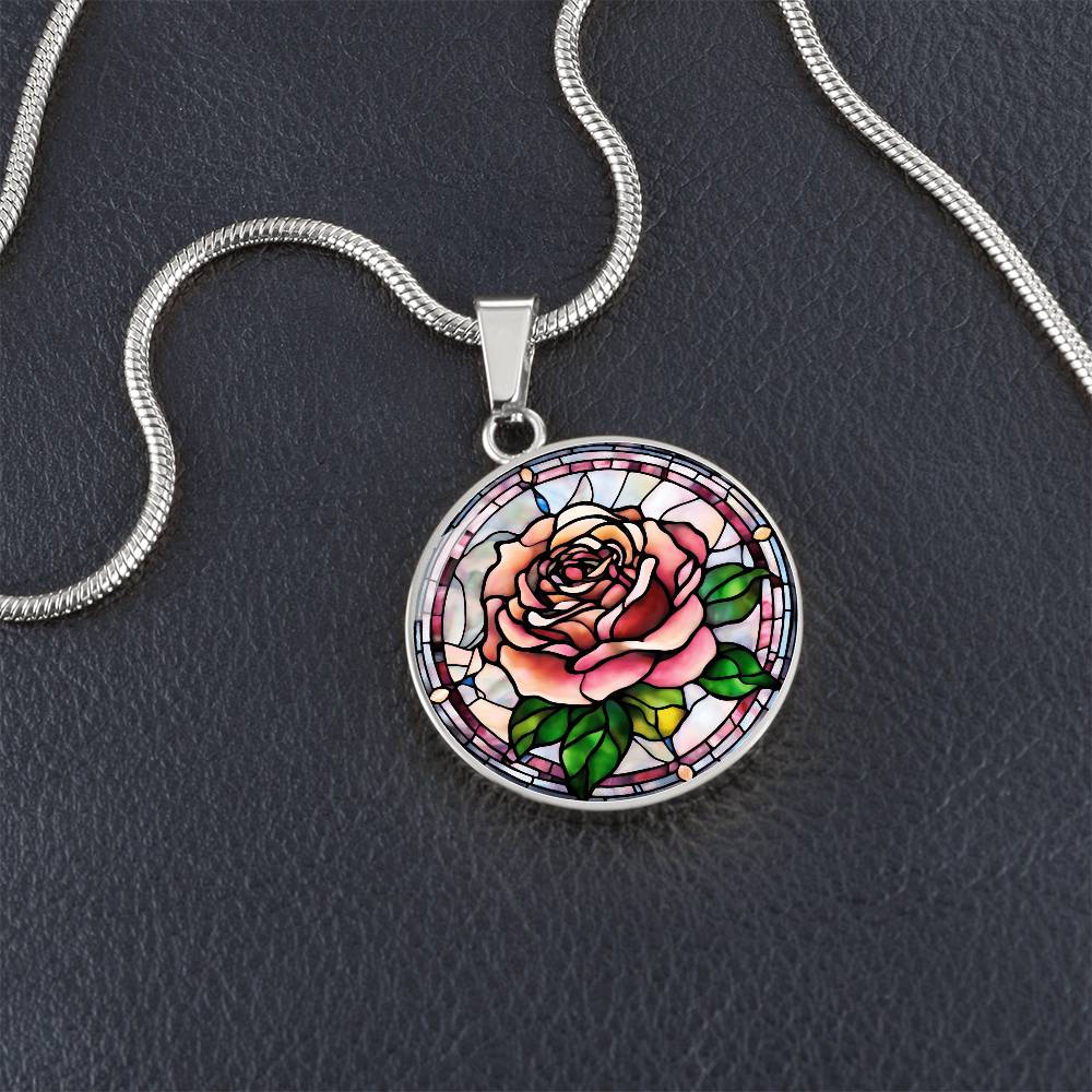 Birth Month Flower Necklace | Rose Birth Flower Necklace | June Birth Flower Necklace | Stained Glass Personalized Pendant Necklace