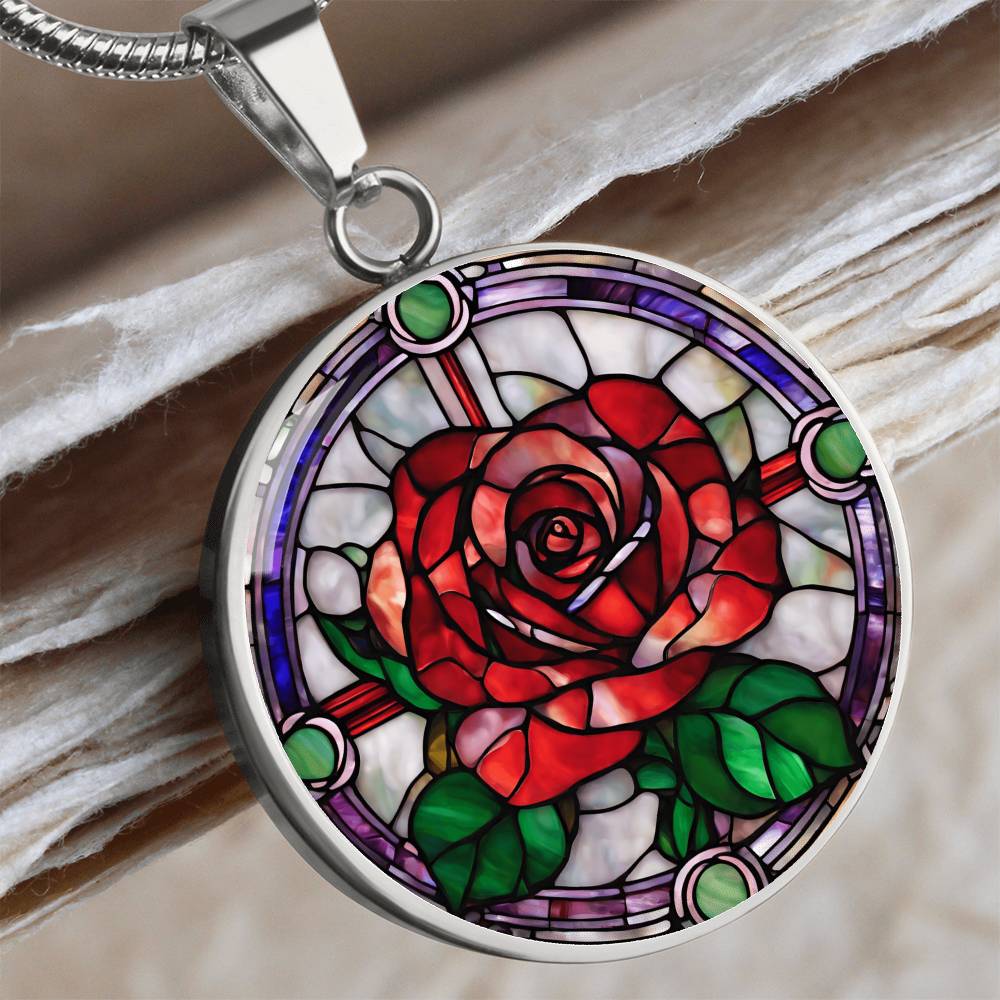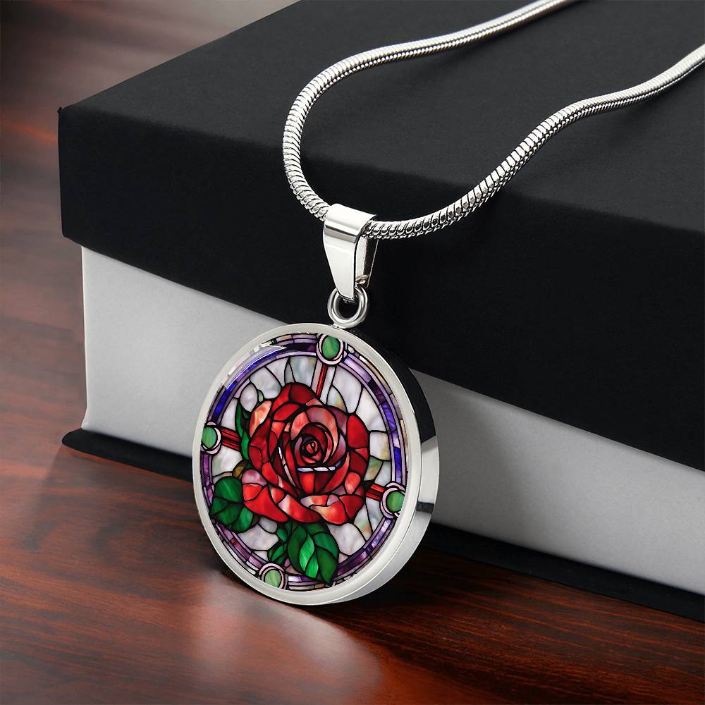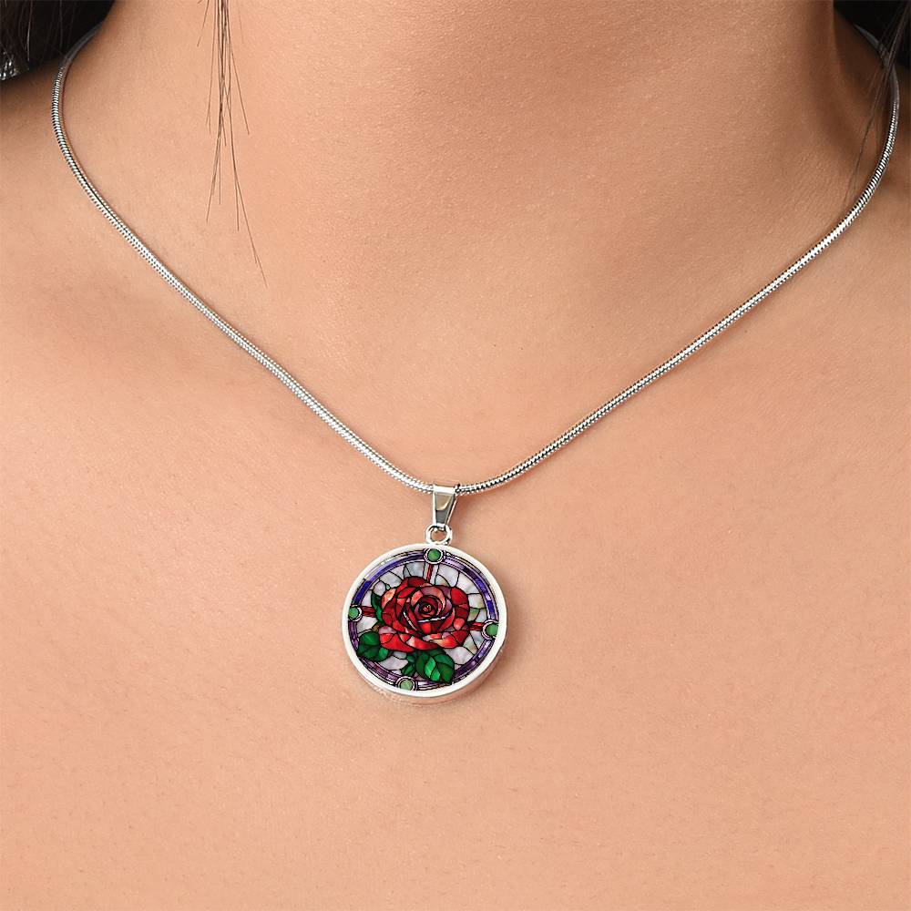 Birth Month Flower Necklace | Rose Birth Flower Necklace | June Birth Flower Necklace | Stained Glass Personalized Pendant Necklace