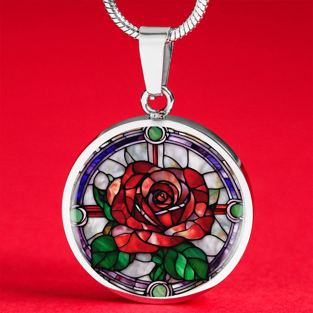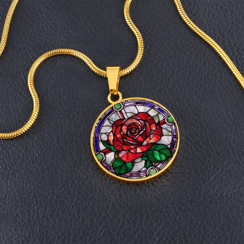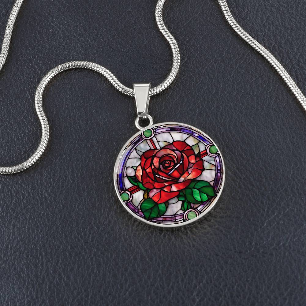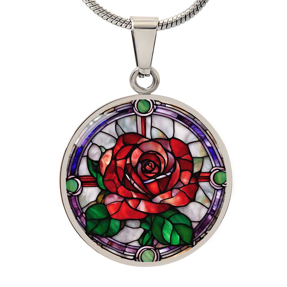 Birth Month Flower Necklace | Rose Birth Flower Necklace | June Birth Flower Necklace | Stained Glass Personalized Pendant Necklace