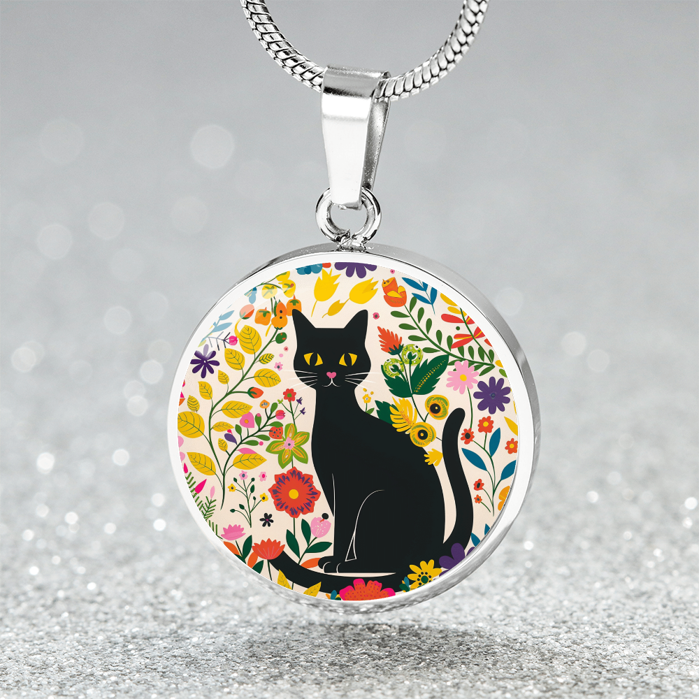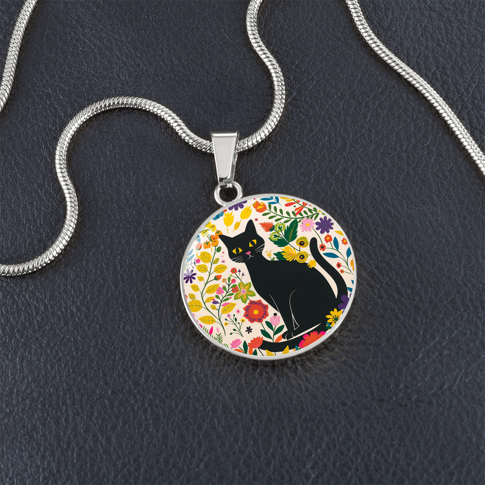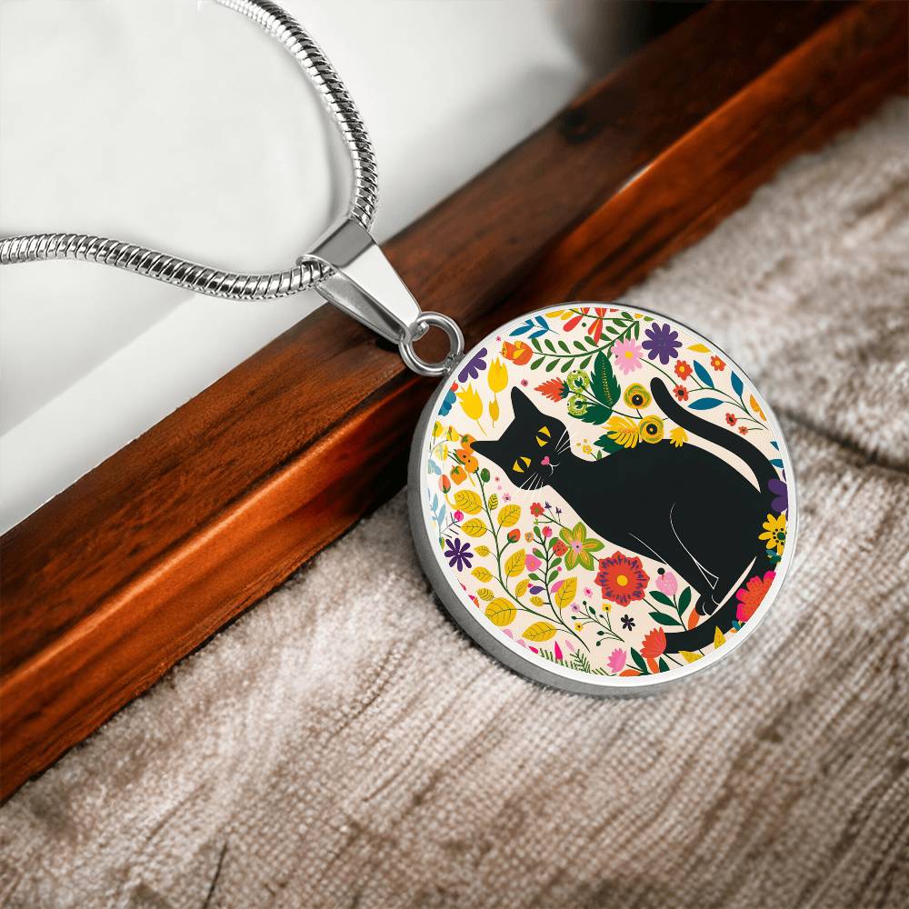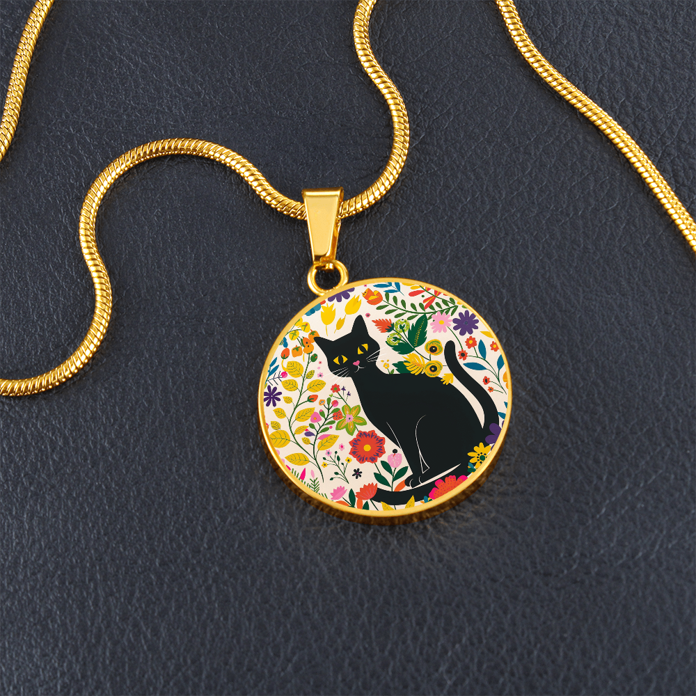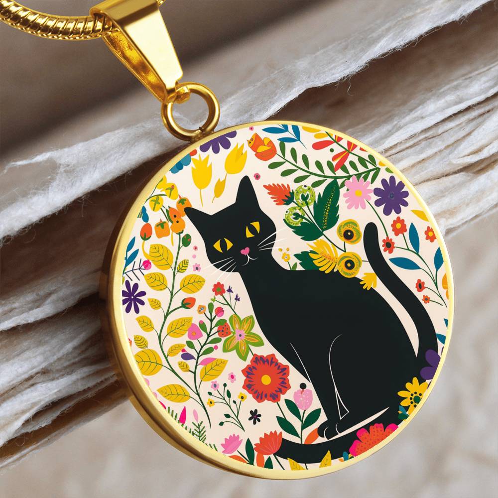 Art Nouveau Black Cat Pendant Necklace | Lovely Cat Jewelry | Cat Lover Gift | Kitty Jewelry