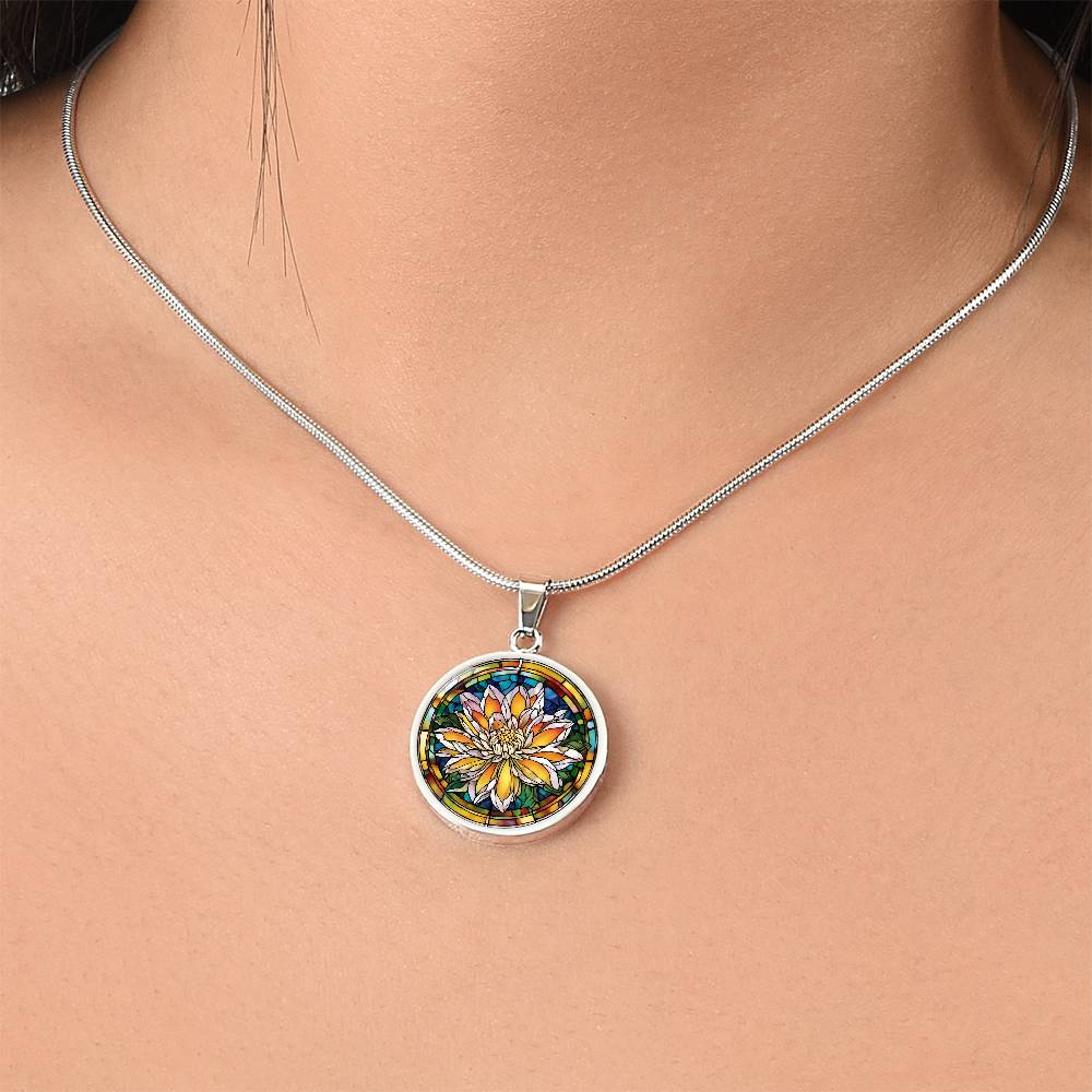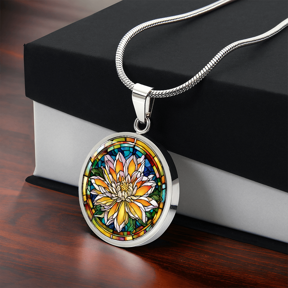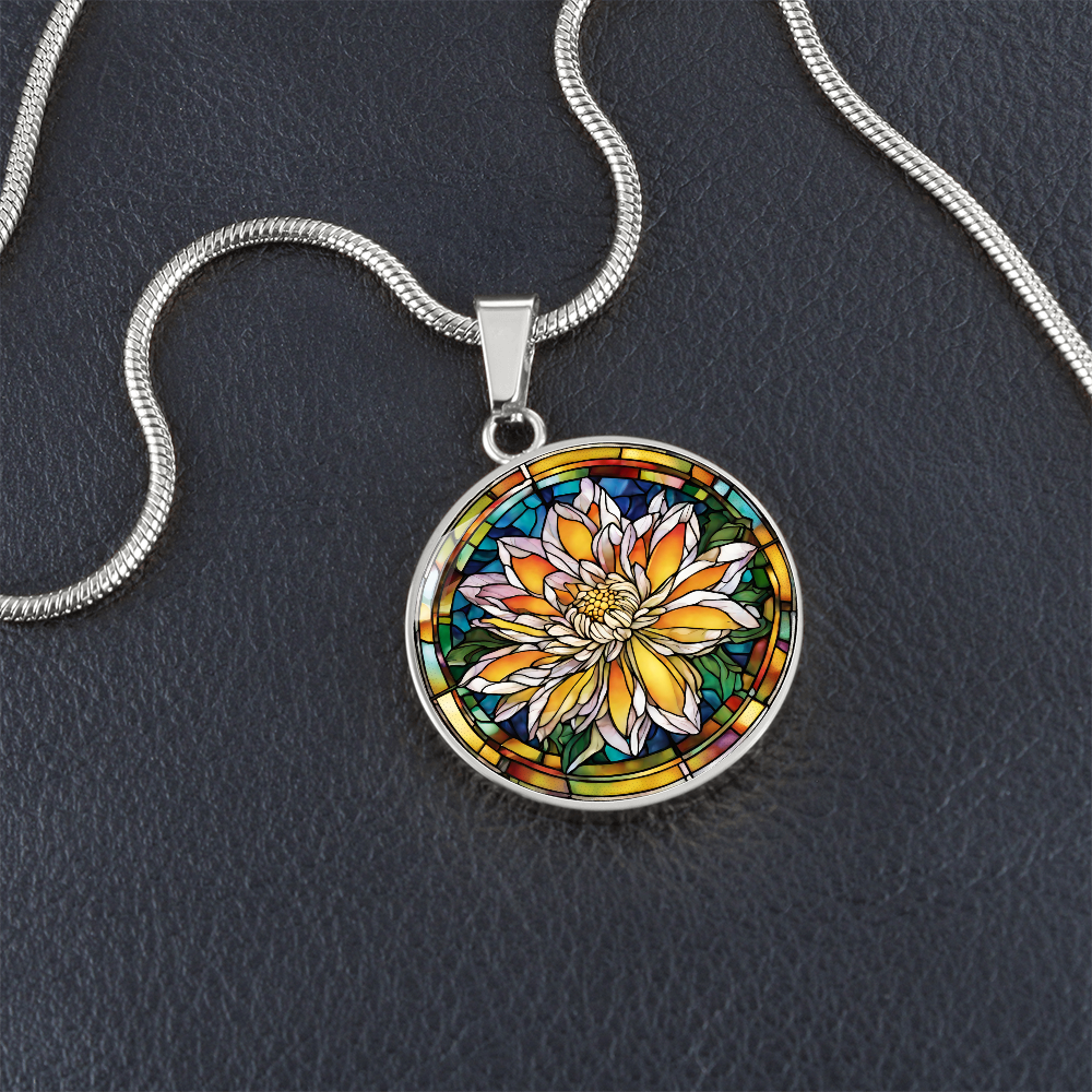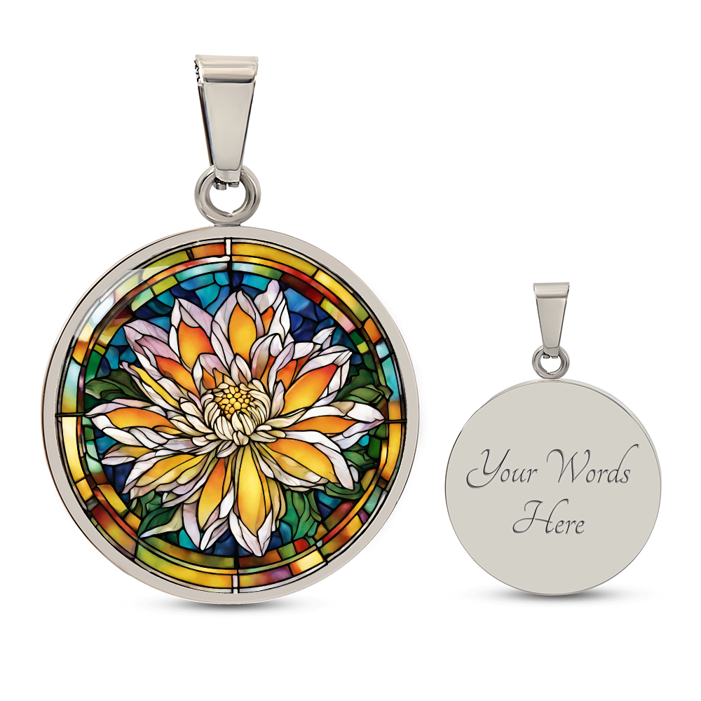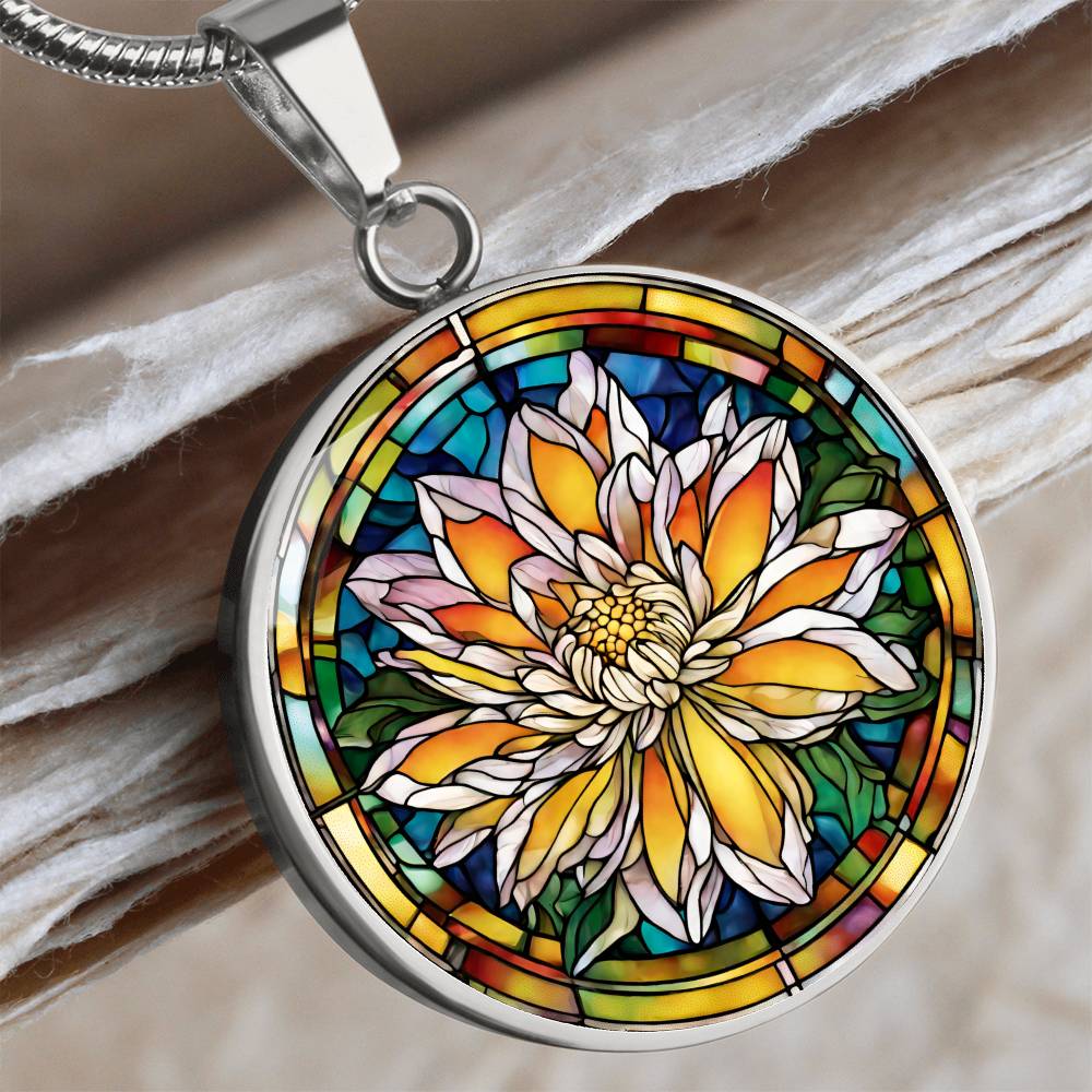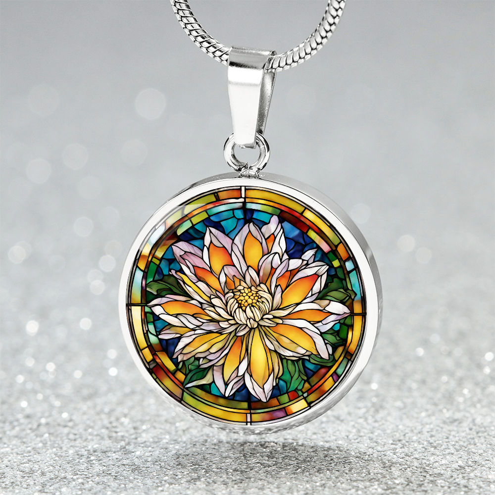 Birth Month Flower Necklace | Chrysanthemum Birth Flower Necklace | November Birth Flower Necklace | Stained Glass Personalized Pendant Necklace