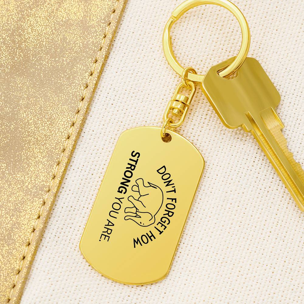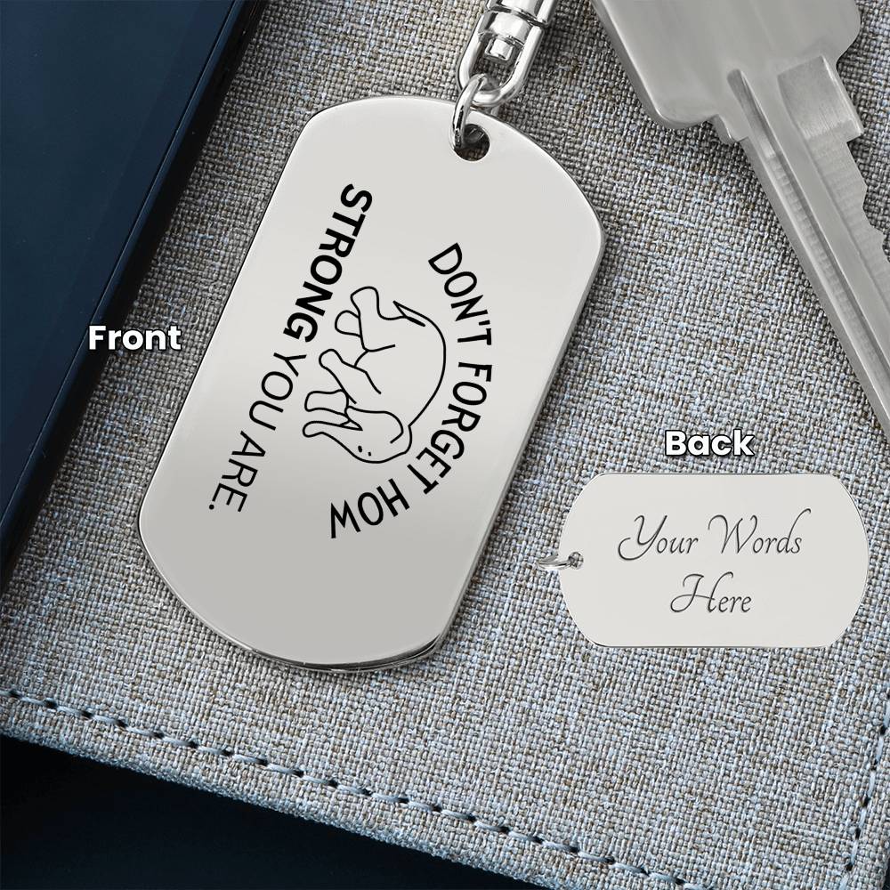 Our engraved ‘don't forget how strong you are’ elephant keychain makes a perfect support gift for someone you care about . It will serve as a daily reminder for people that might be going through a bad day and need a little bit of encouragement or motivation for their day.