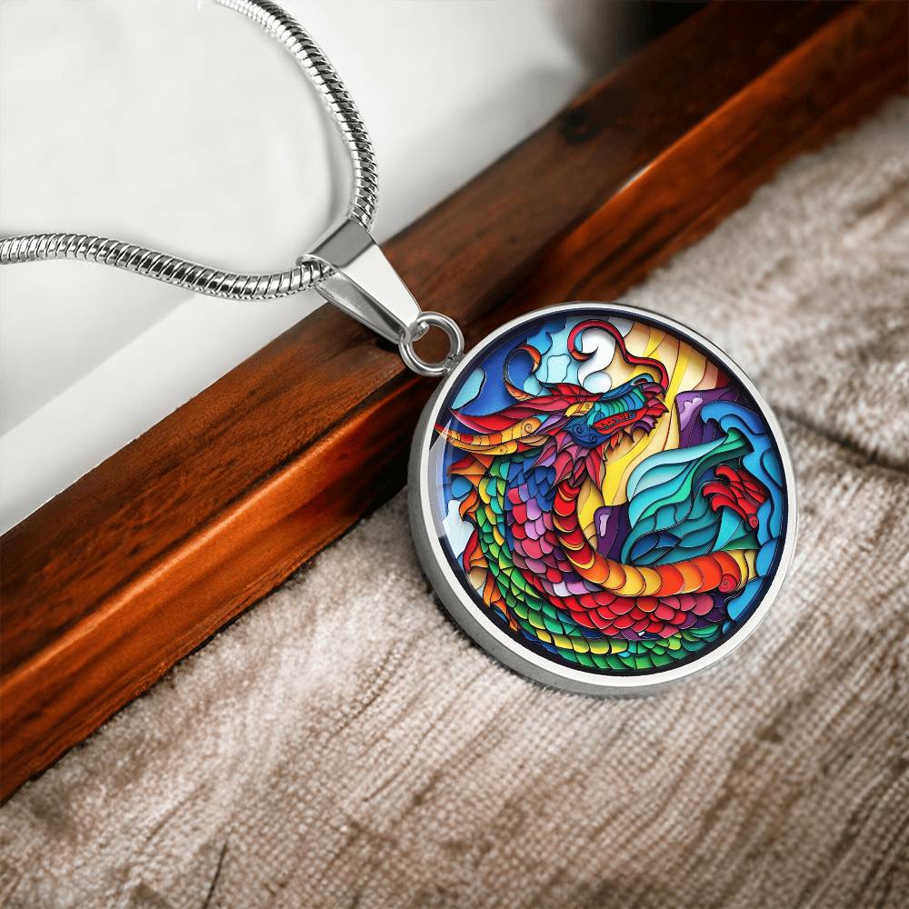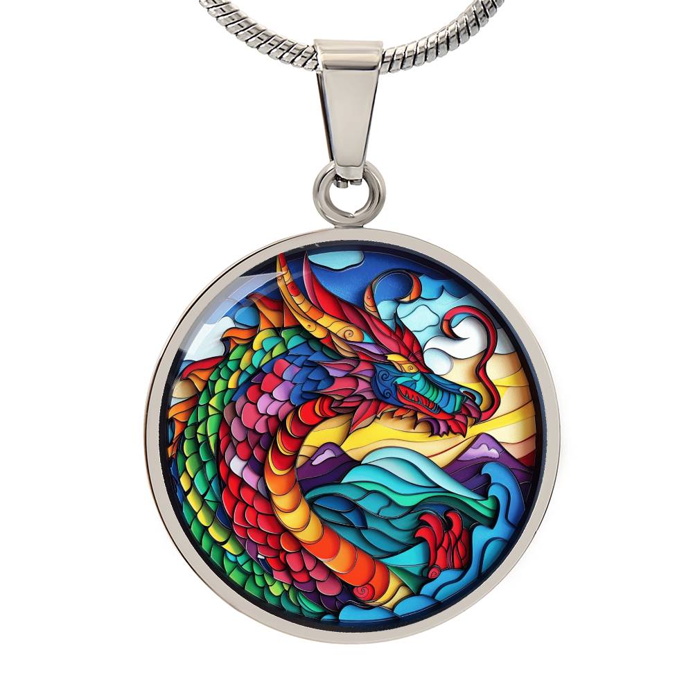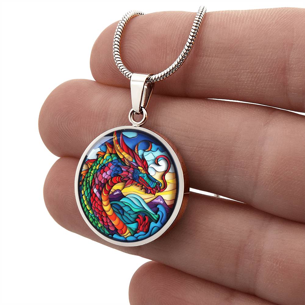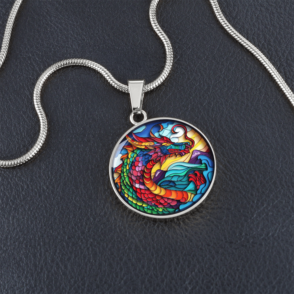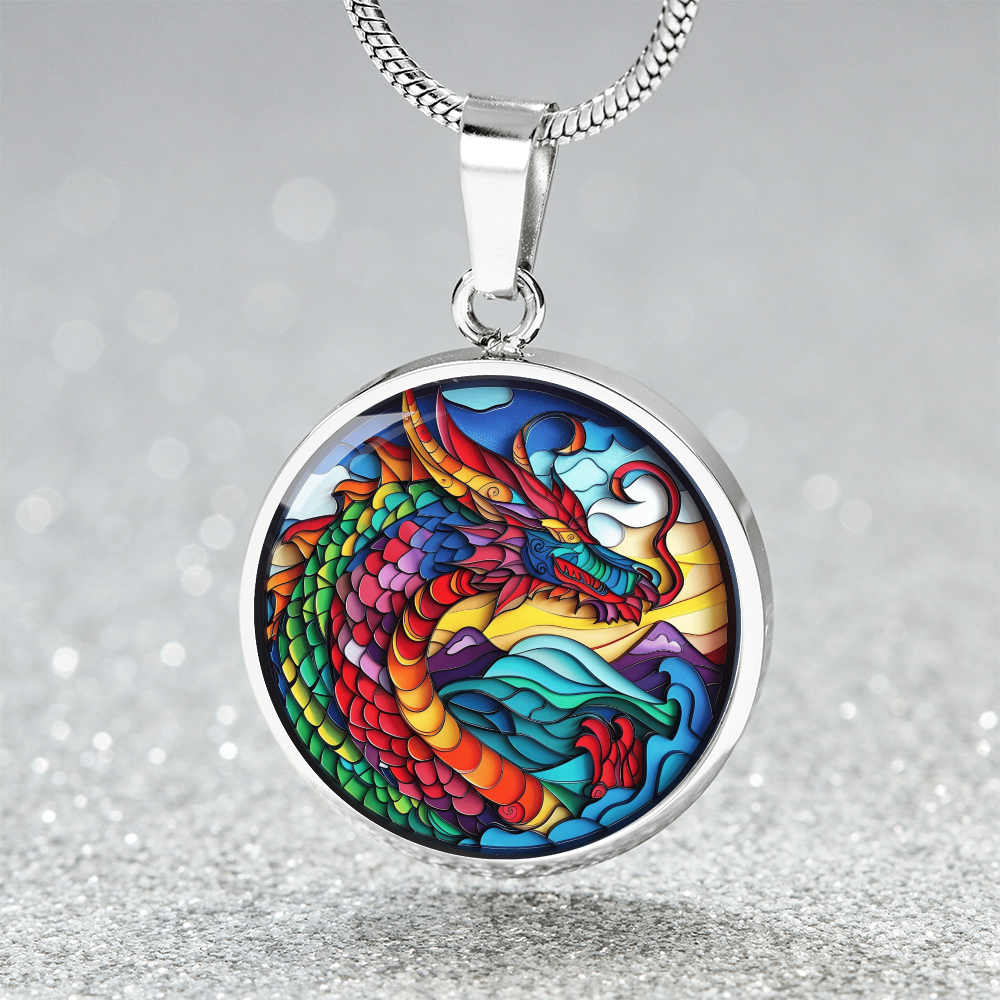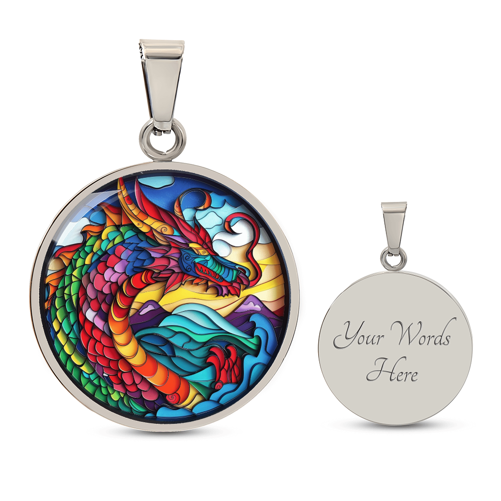 Our gorgeous pendant necklace makes a perfect gift for dragon lovers. This vibrant dragon art comes in an eye catching 3d paper effect that will be sure to draw attention to your dragon.