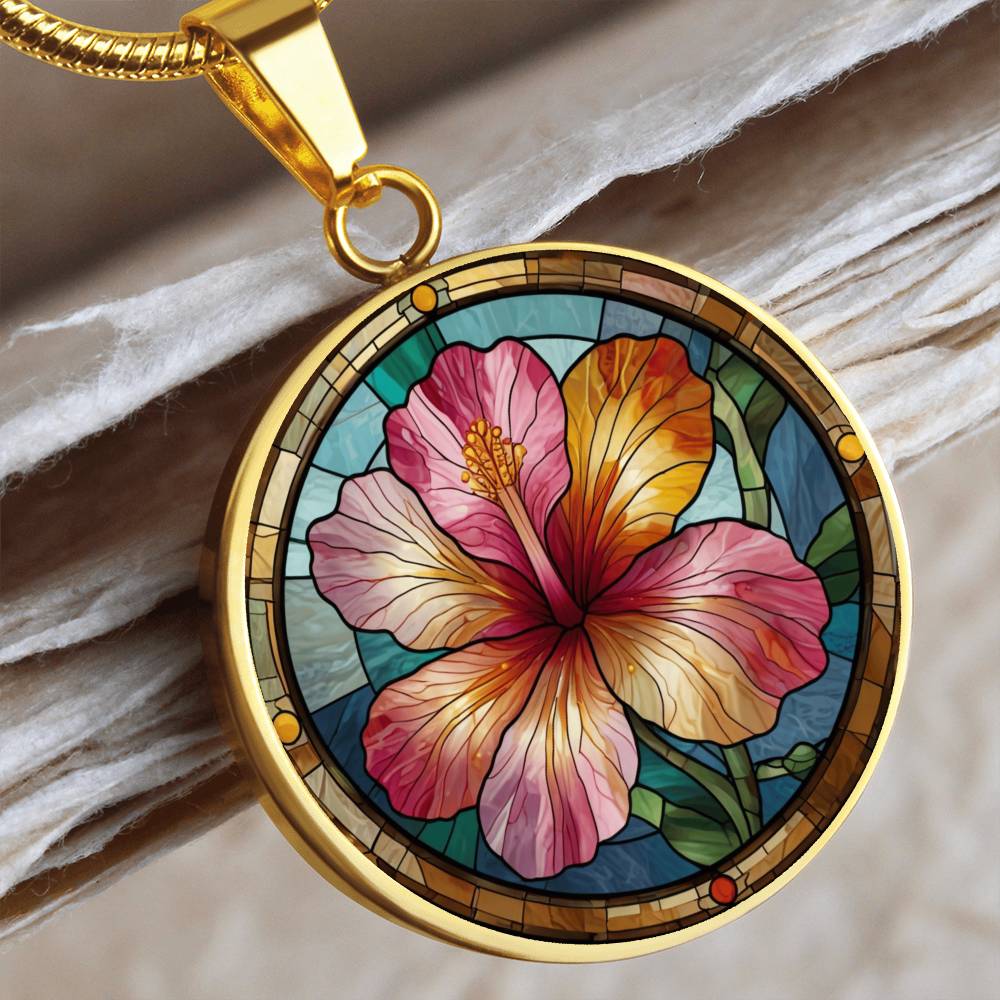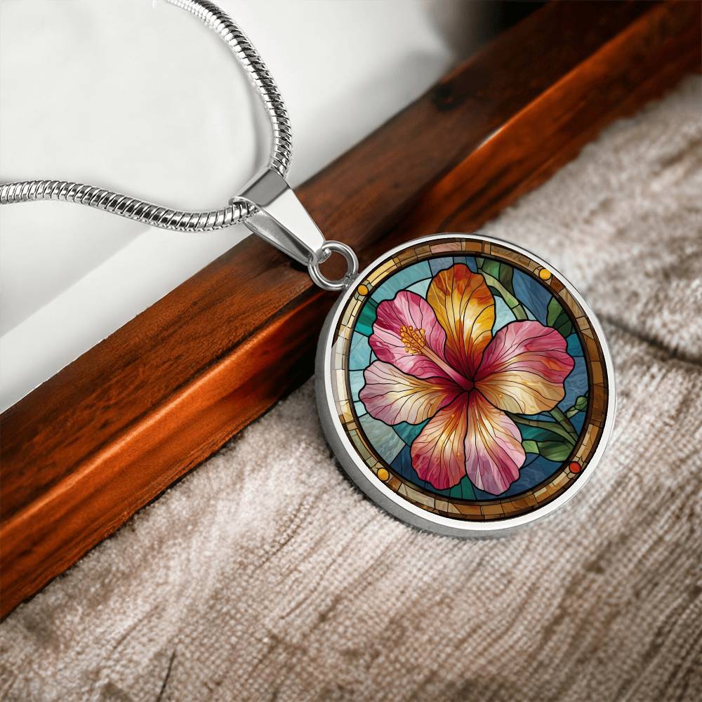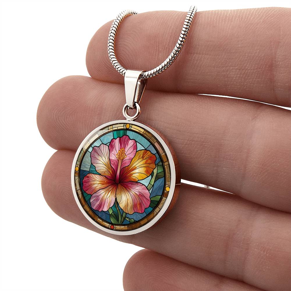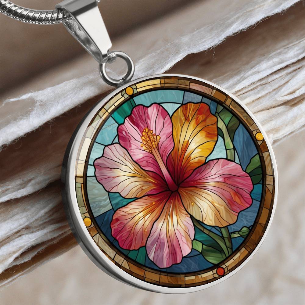 Hibiscus Flower Pendant Necklace with Faux Stained Glass | Hawaiian Summer Flower | Boho Summer Jewelry