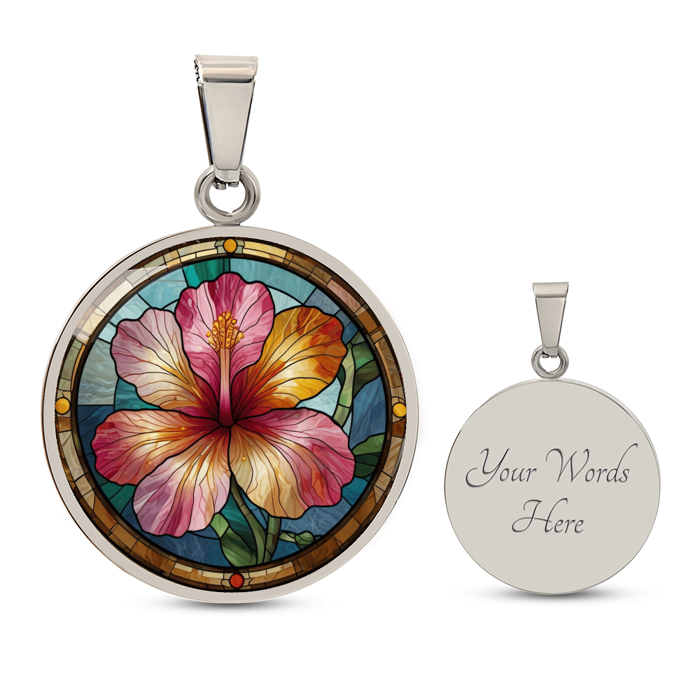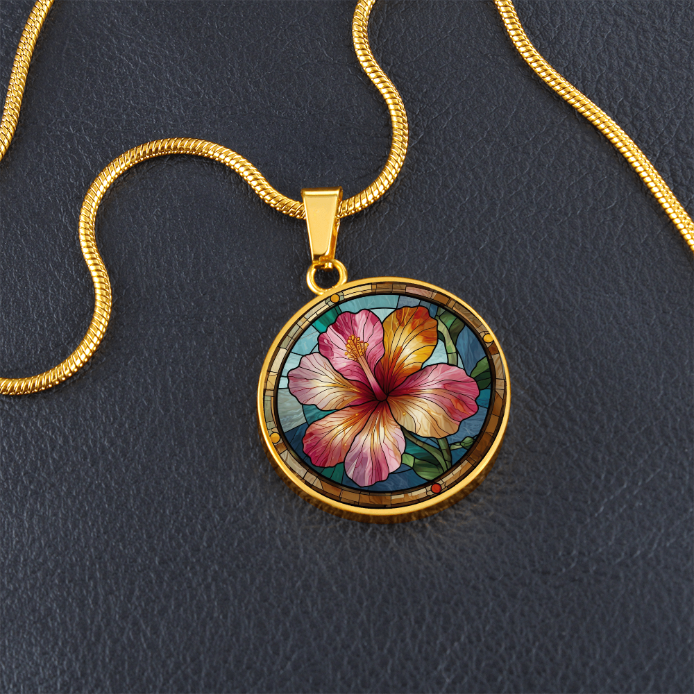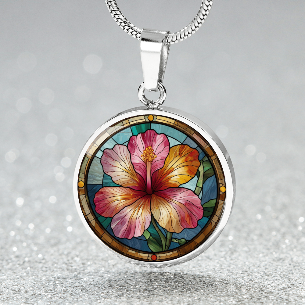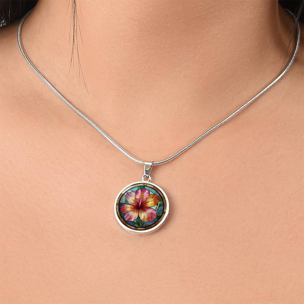Hibiscus Flower Pendant Necklace with Faux Stained Glass | Hawaiian Summer Flower | Boho Summer Jewelry