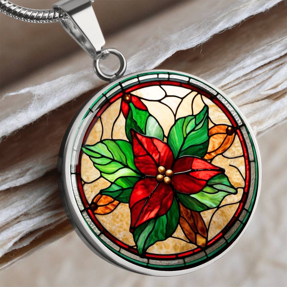 Birth Month Flower Necklace | Holly Birth Flower Necklace | December Birth Flower Necklace | Stained Glass Personalized Pendant Necklace