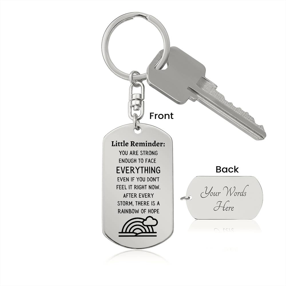 Our engraved ‘little reminder’ keychain makes a perfect support gift for someone you care about . It will serve as a daily reminder for people that might be going through a bad day and need a little bit of encouragement or motivation for their day.