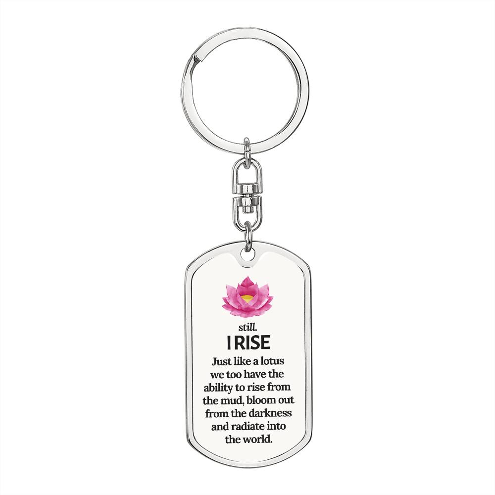 Our engraved Lotus "I RISE" keychain makes a perfect motivational gift for someone you care about . It will serve as a daily reminder for people that have gone through a tough time to keep being positive. Ideal for people recovering from illness or having gone through a break up.
