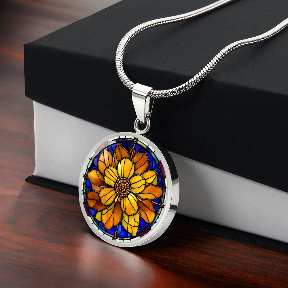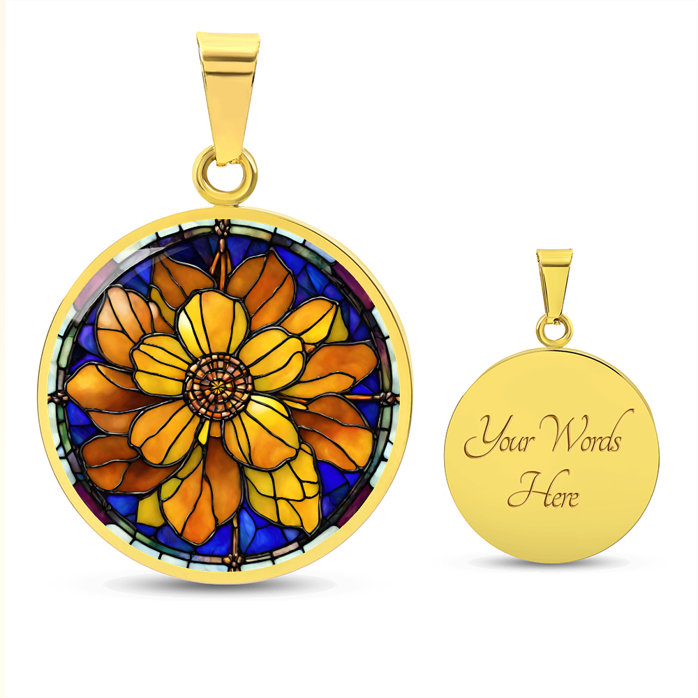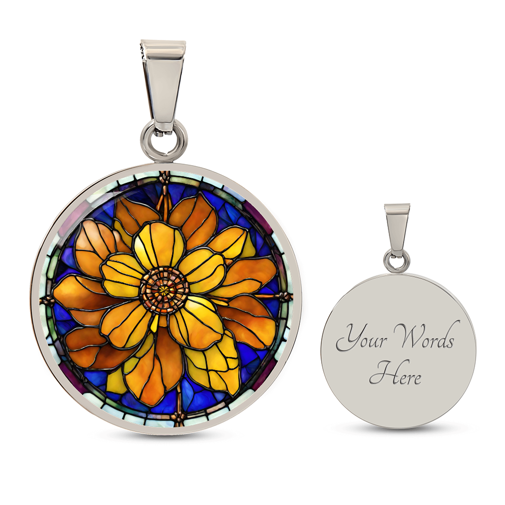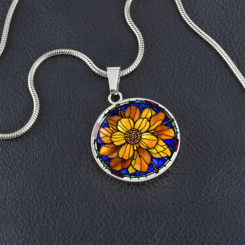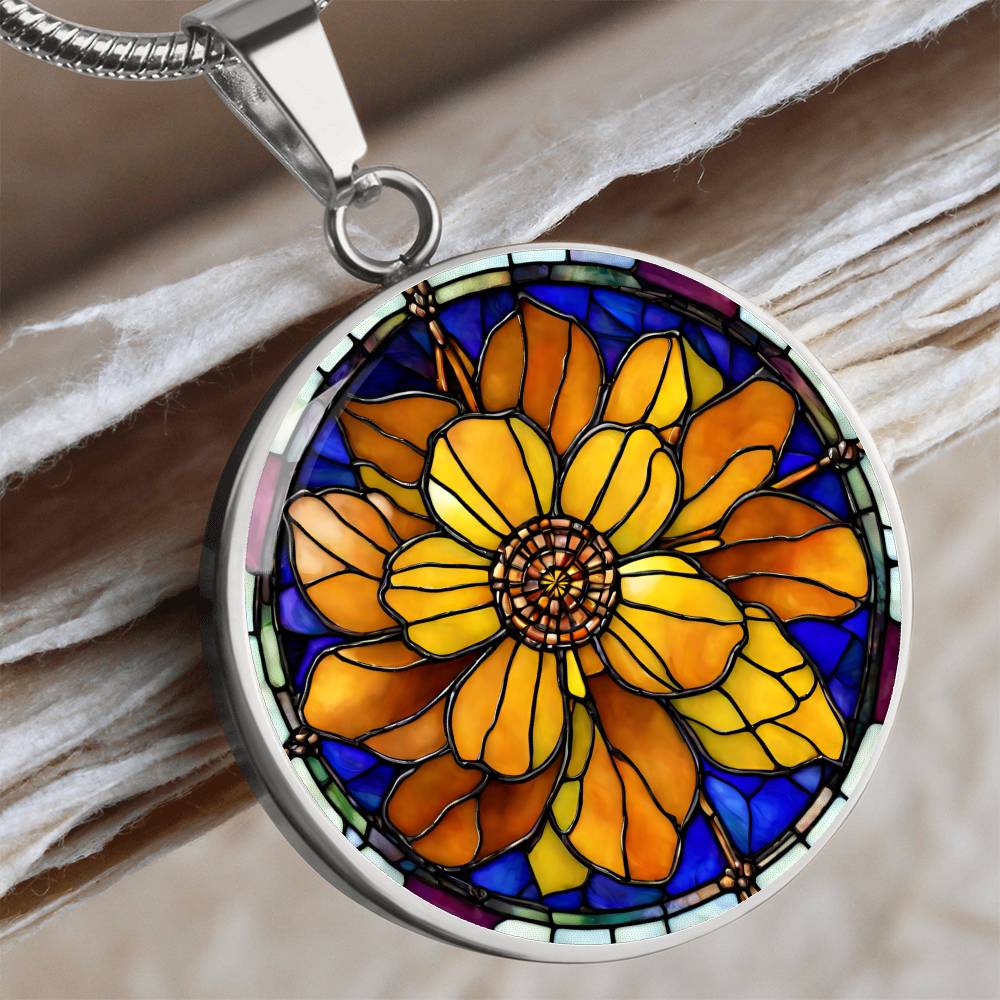 Birth Month Flower Necklace | Marigold Birth Flower Necklace | October Birth Flower Necklace | Stained Glass Personalized Pendant Necklace