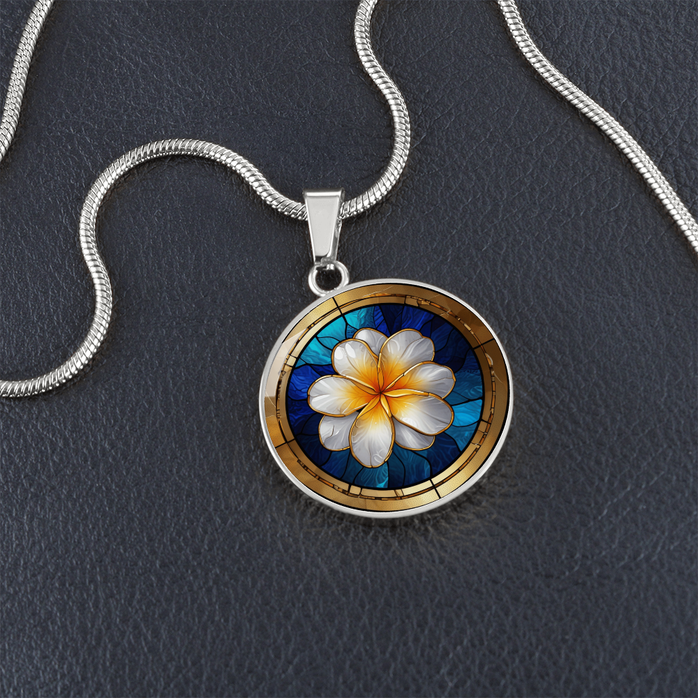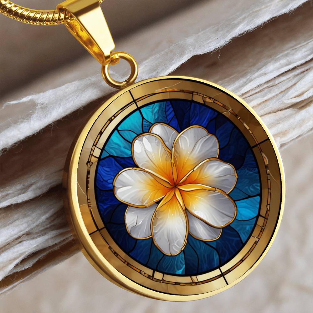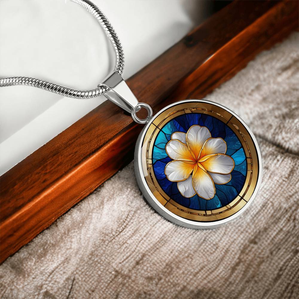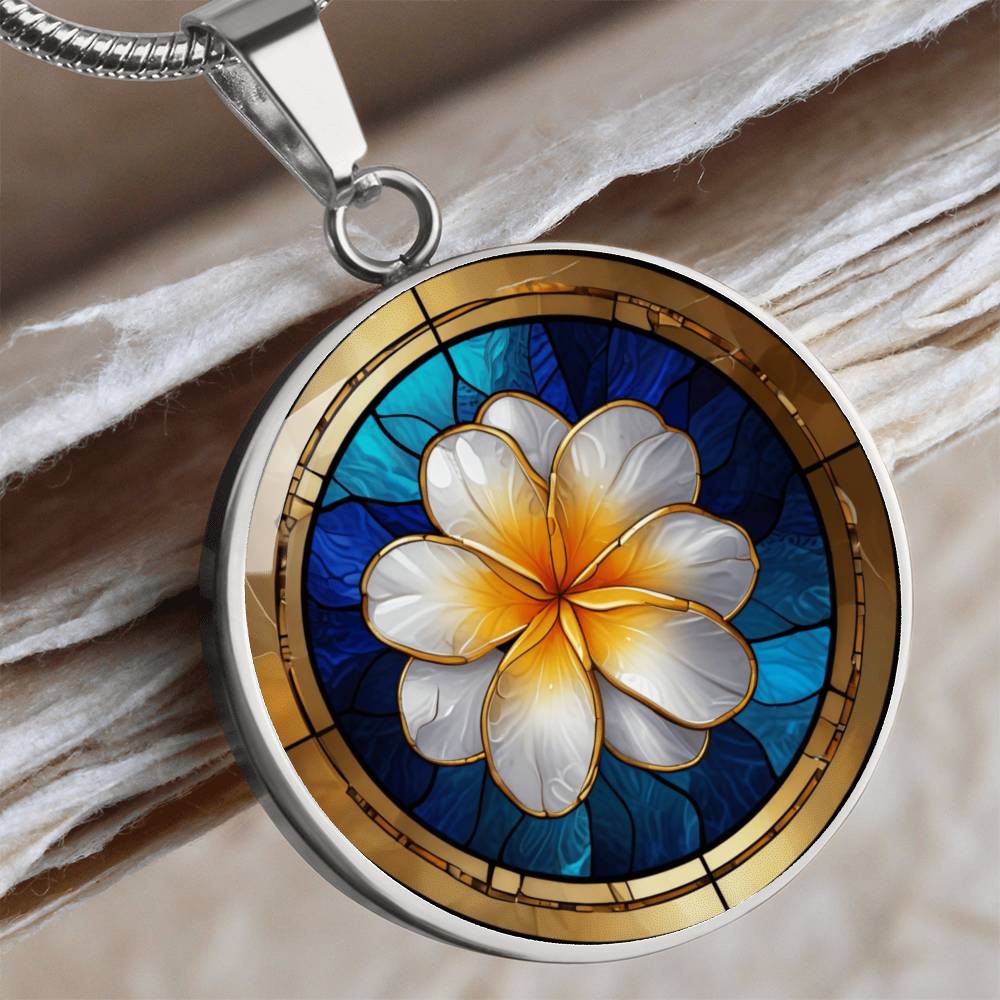 Plumeria Flower Pendant Necklace in Stained Glass Effect | Plumeria Charm Necklace
