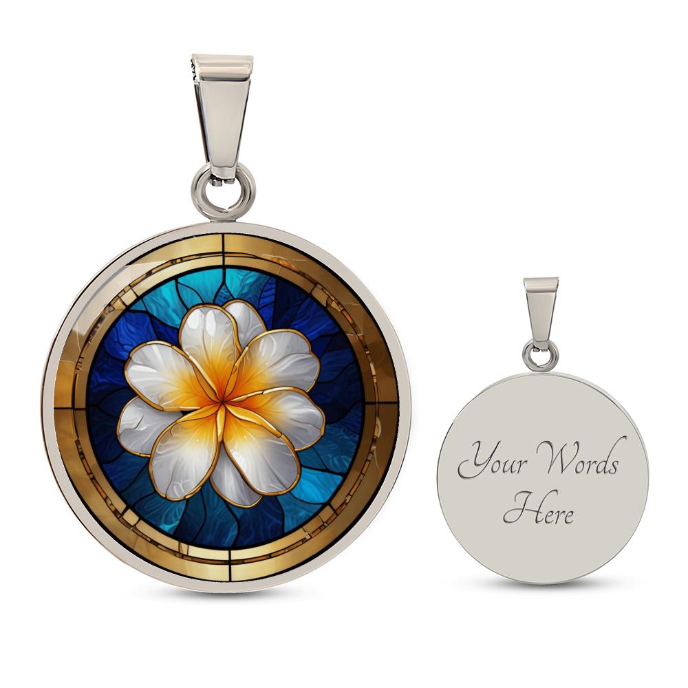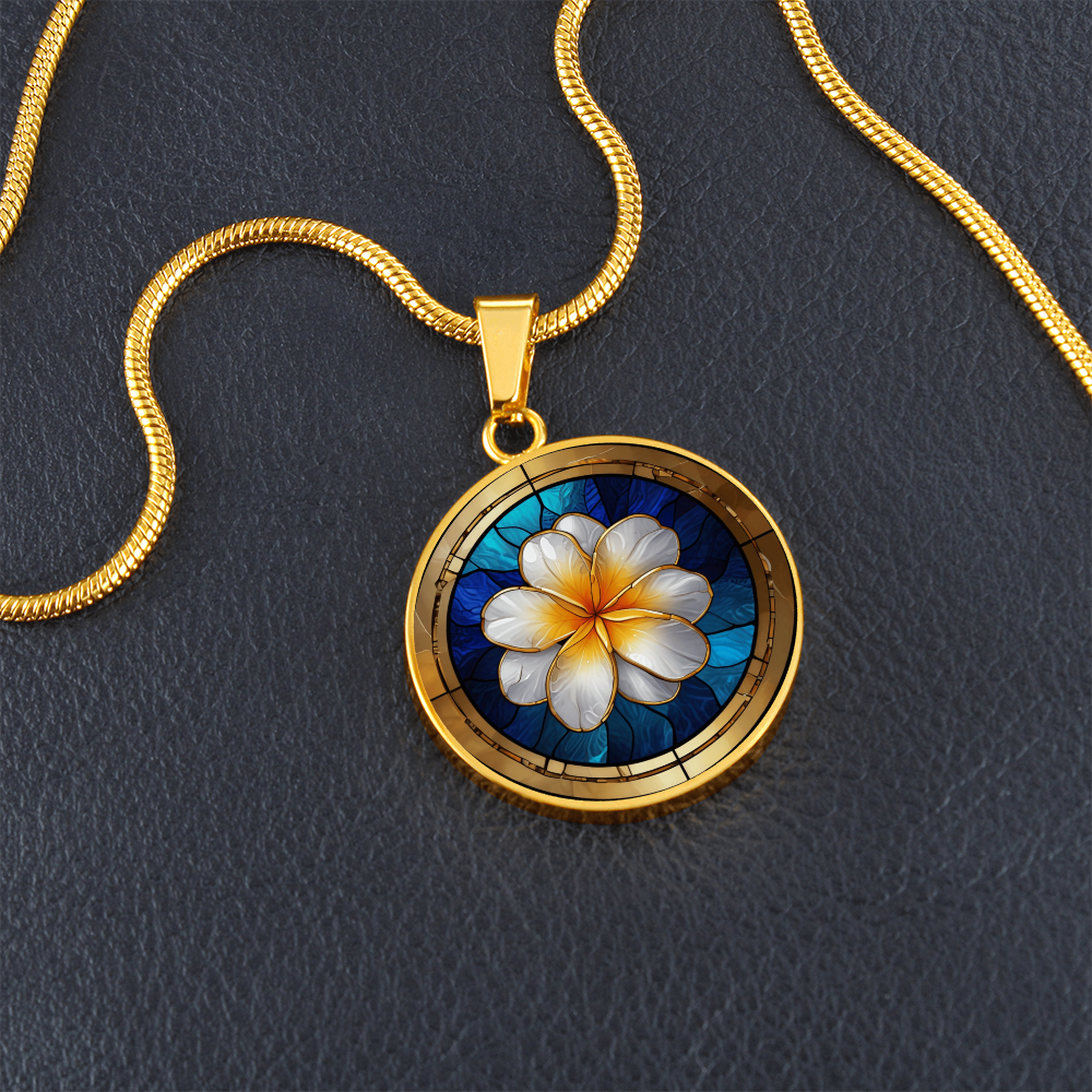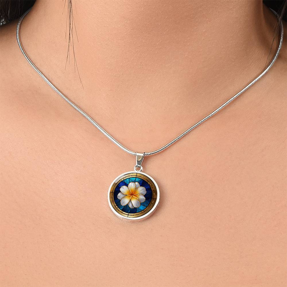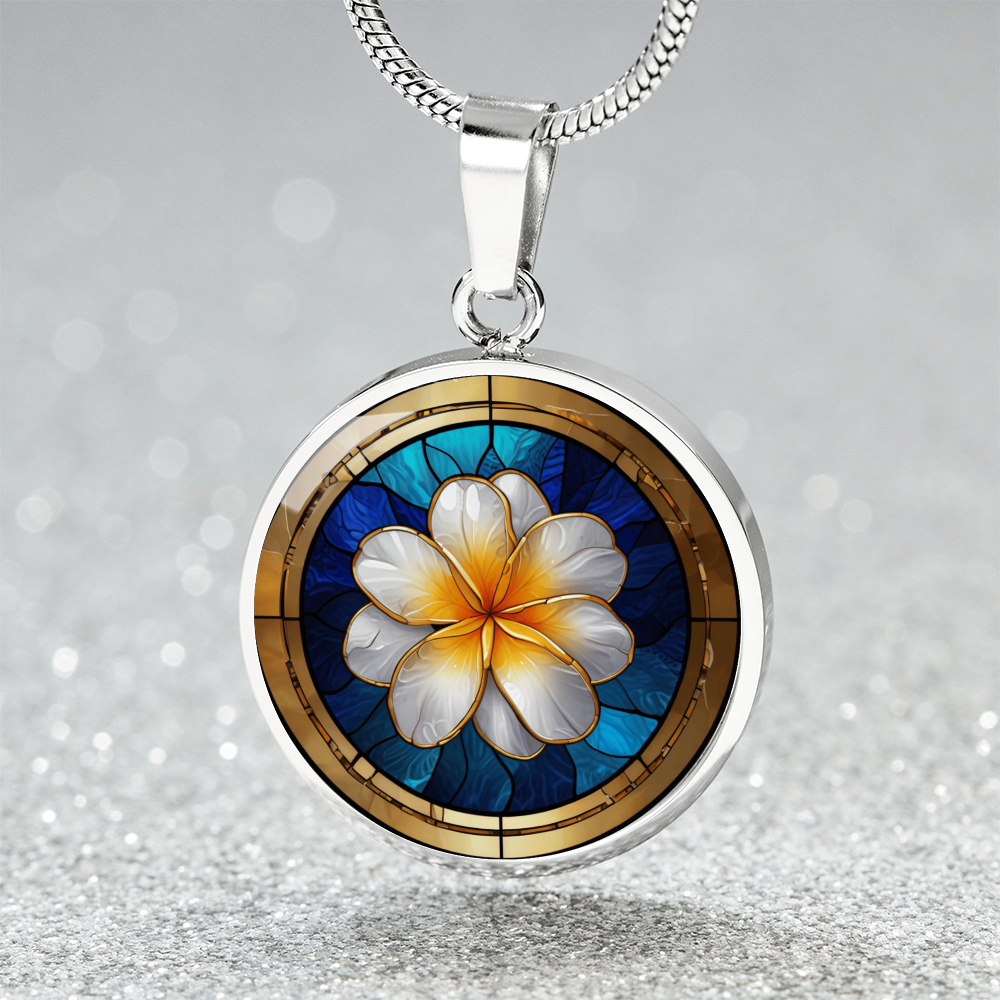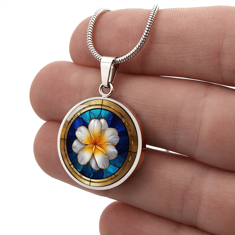 Plumeria Flower Pendant Necklace in Stained Glass Effect | Plumeria Charm Necklace