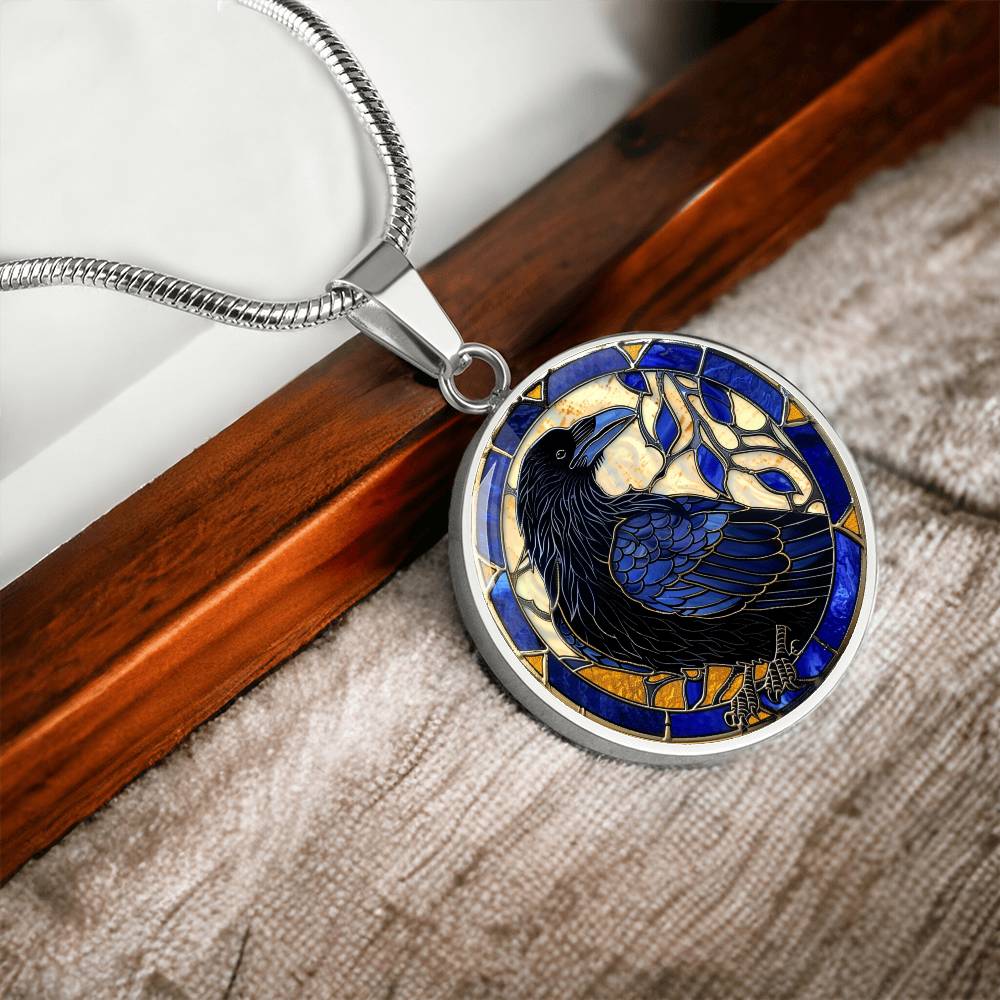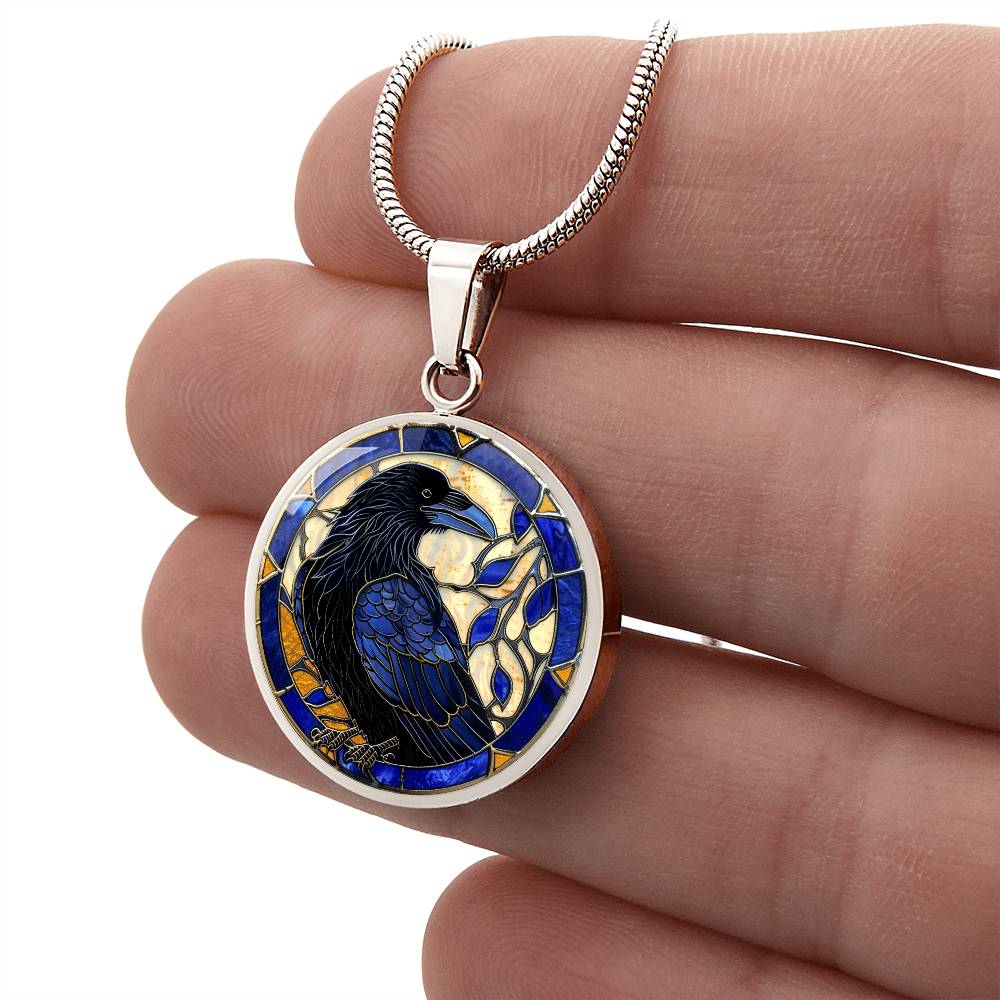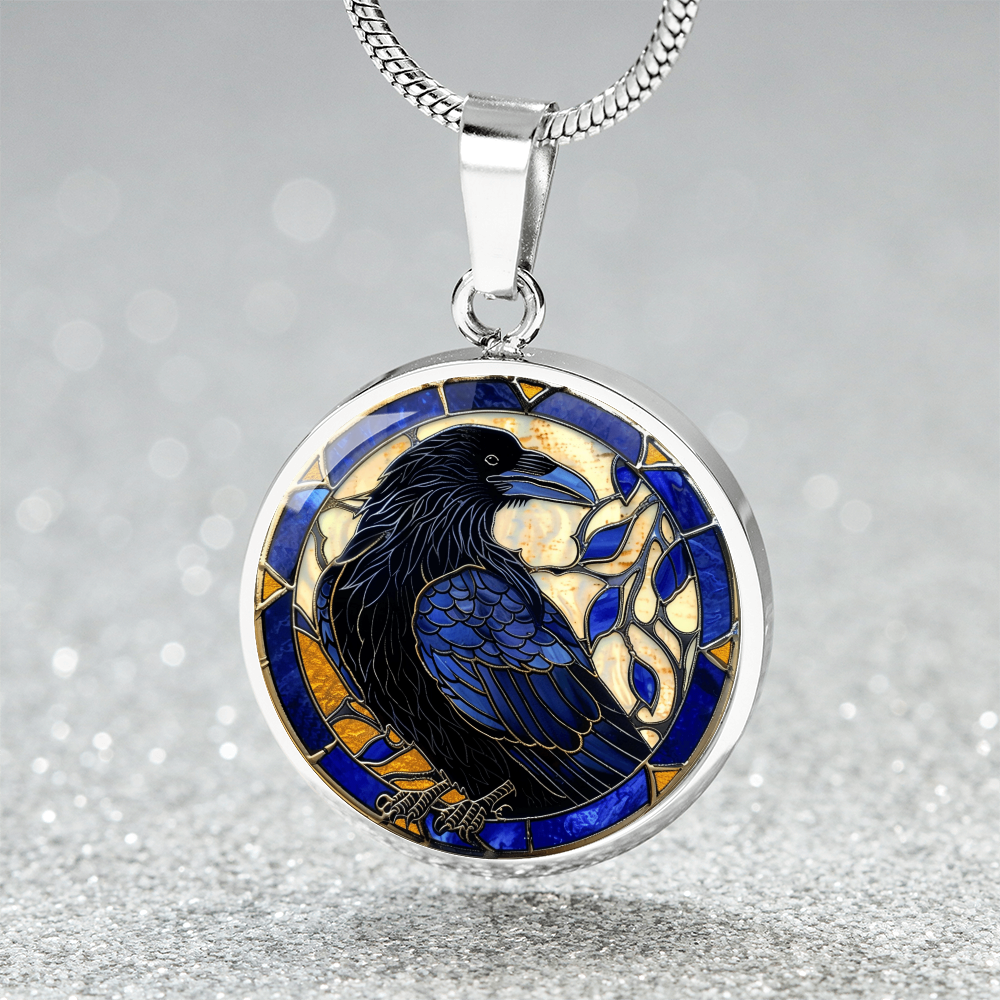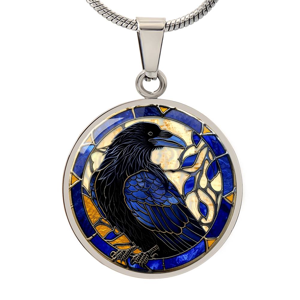 Black Raven Necklace, Raven Faux Stained Glass Effect