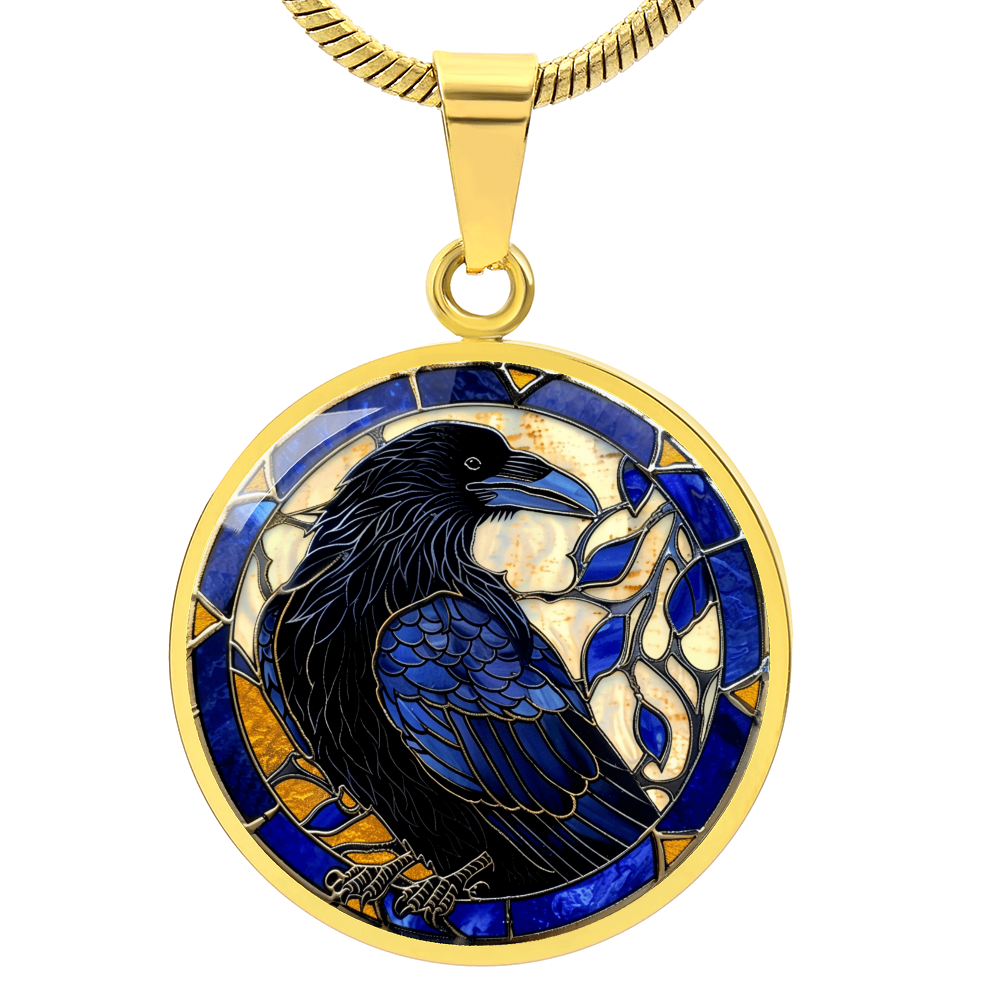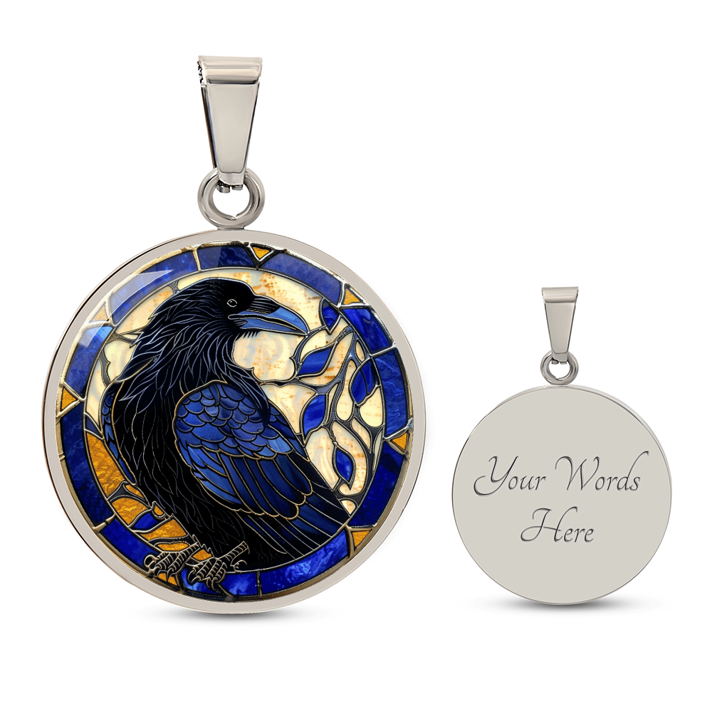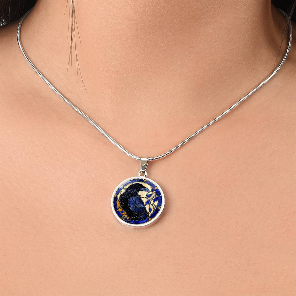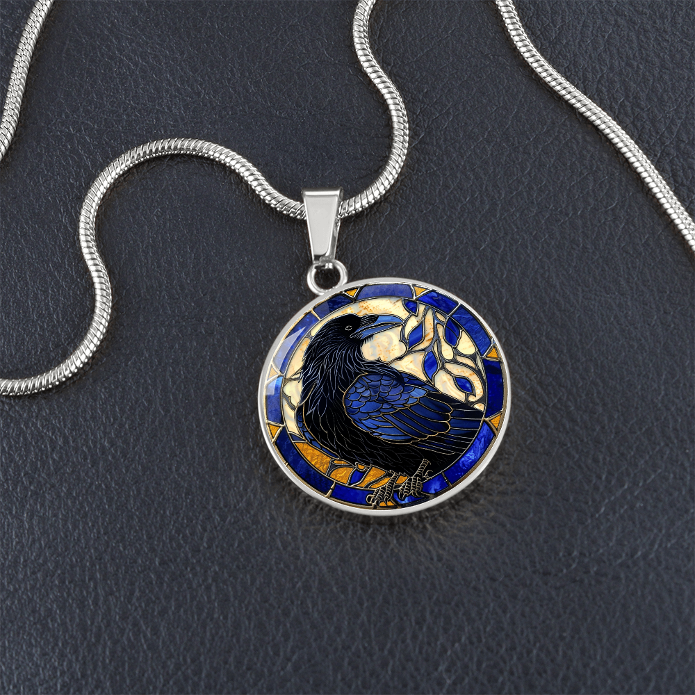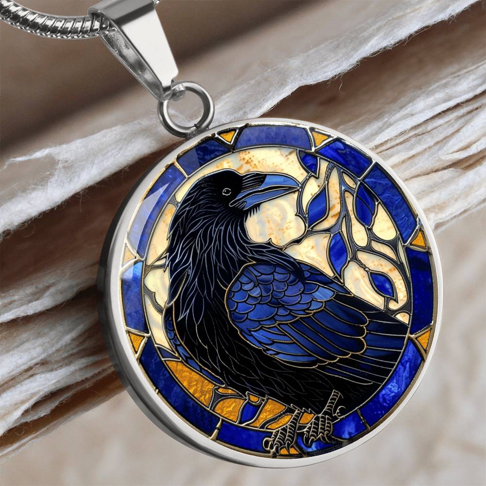 Black Raven Necklace, Raven Faux Stained Glass Effect
