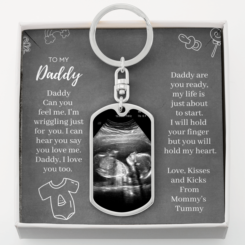 Daddy Can You Feel Me Sonogram Keychain for New Dad