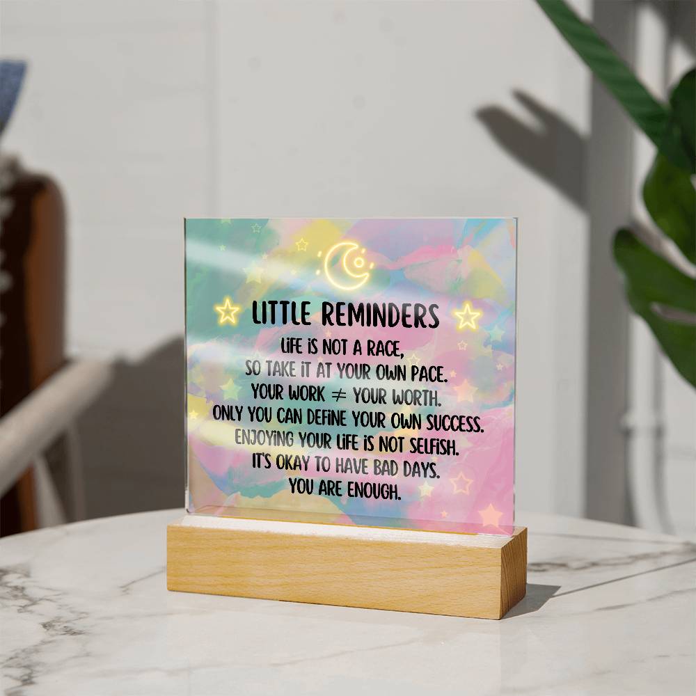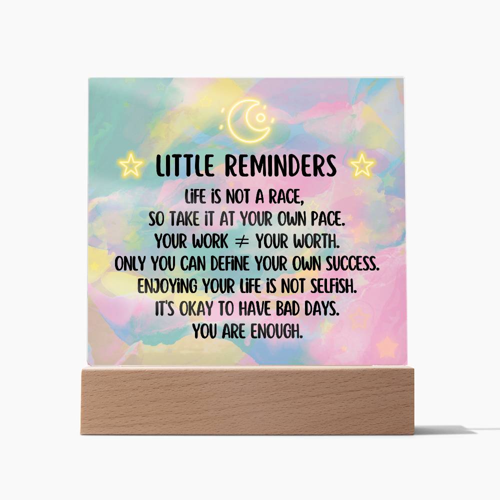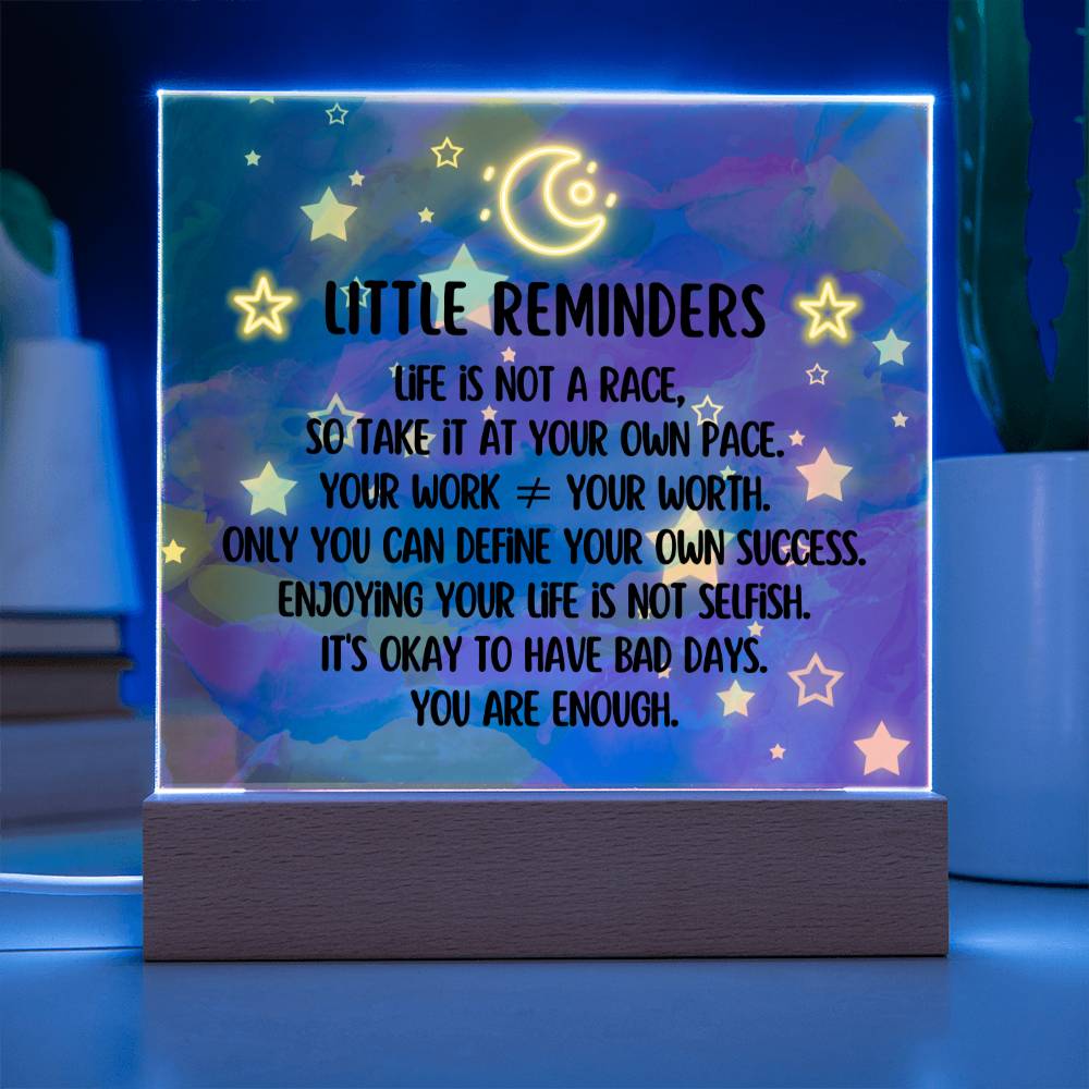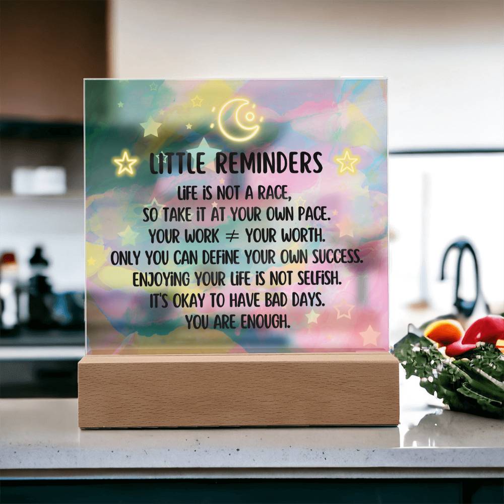 Spread some positivity with our Little Reminders Square Acrylic Plaque!