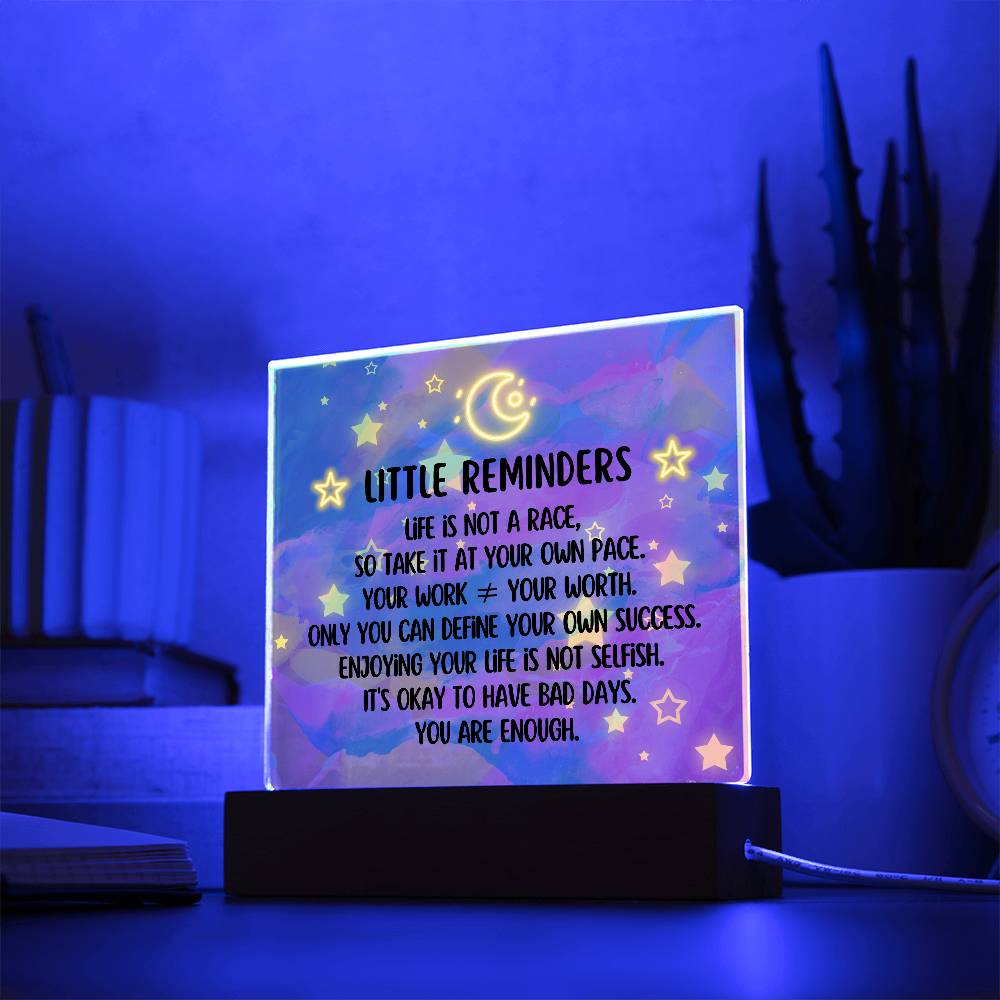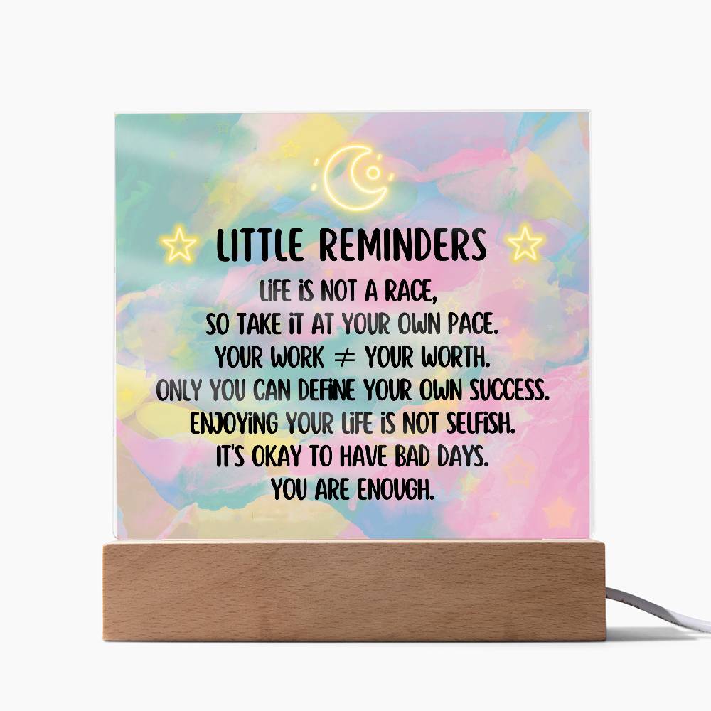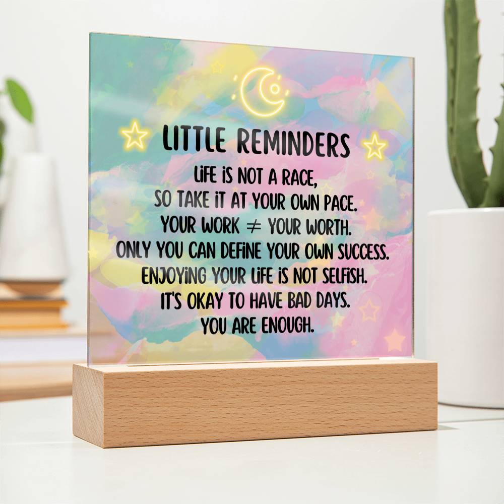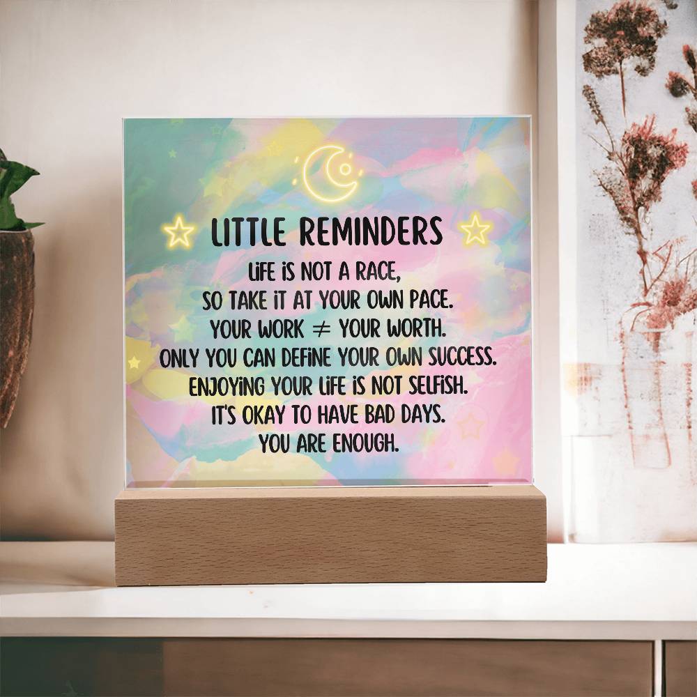 Spread some positivity with our Little Reminders Square Acrylic Plaque!