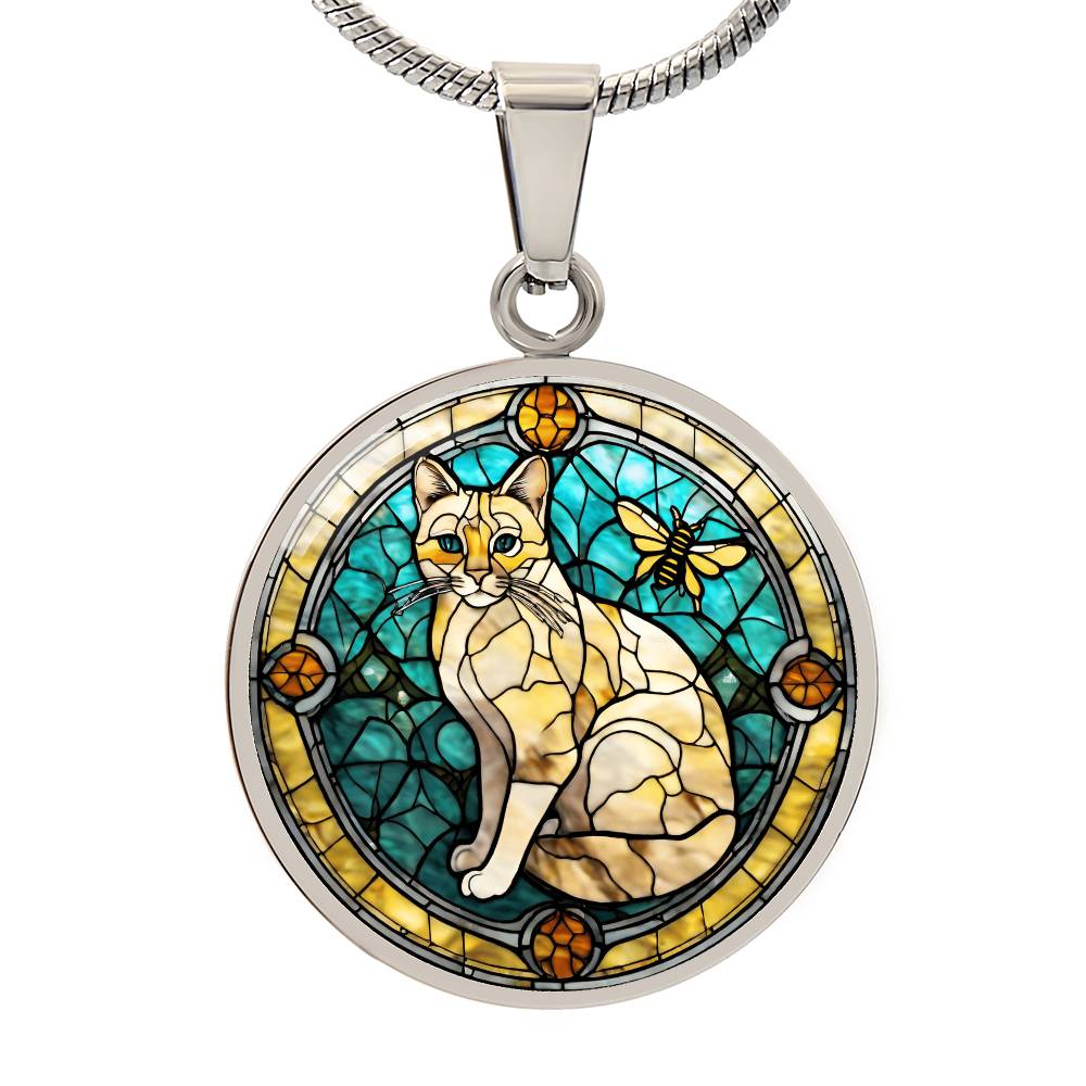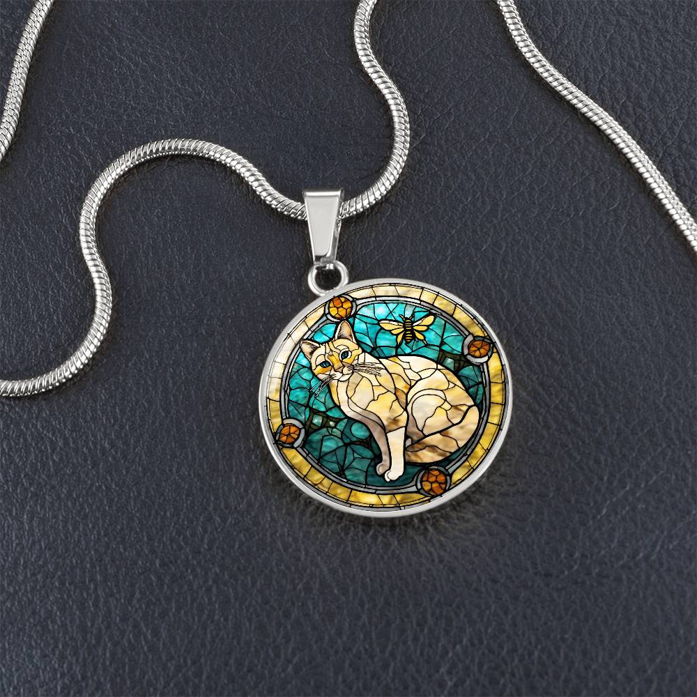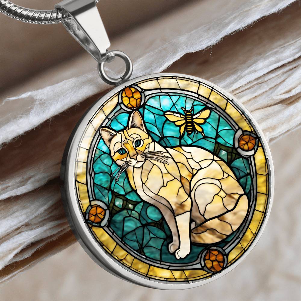 Stained Glass Personalized Pendant Necklace | Animal Lover Gift | Cat Mom Birthday Present | Jewelry For Pet Loss