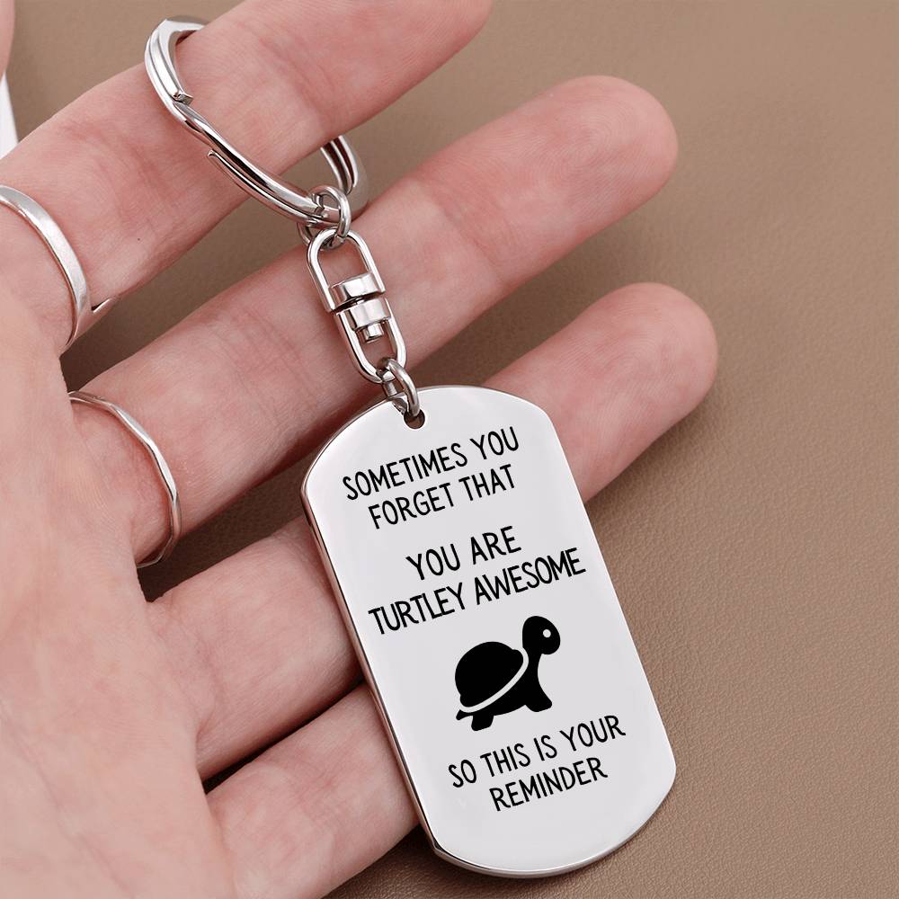 Our engraved ‘turtley awesome’ keychain makes a perfect friendship gift for someone you care about . Also makes a perfect appreciation gift for a friend or coworker or employee.