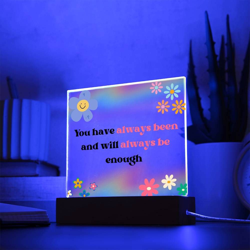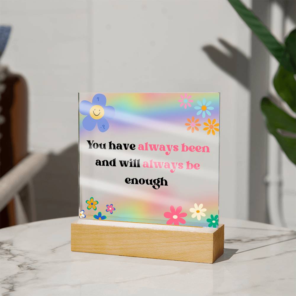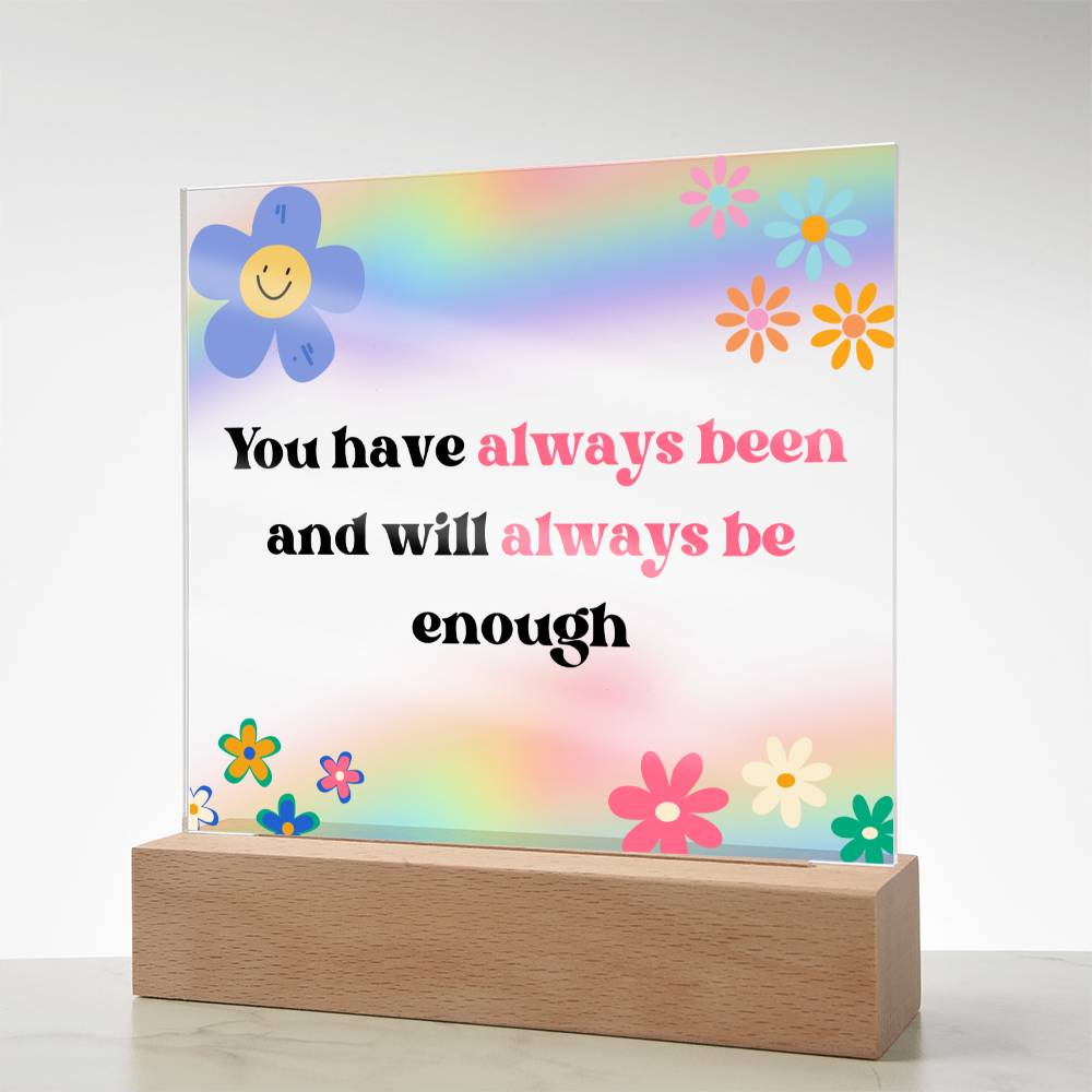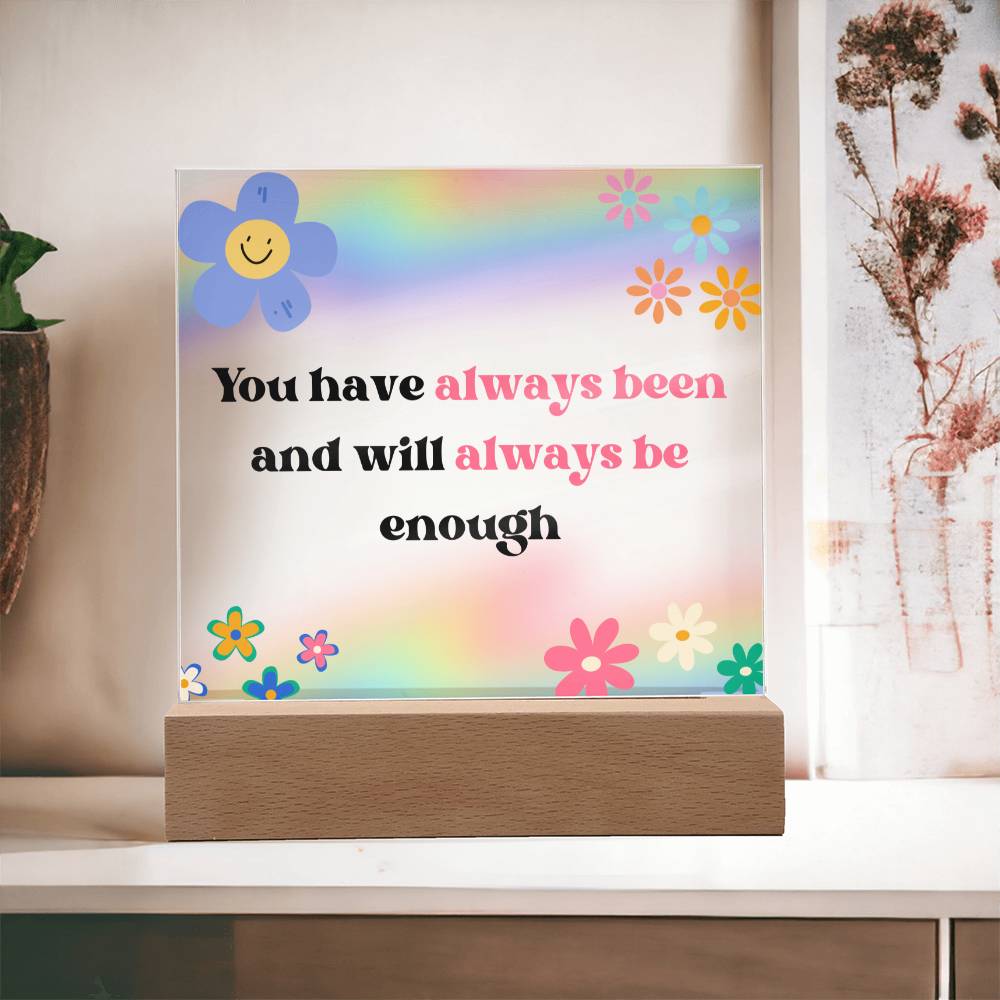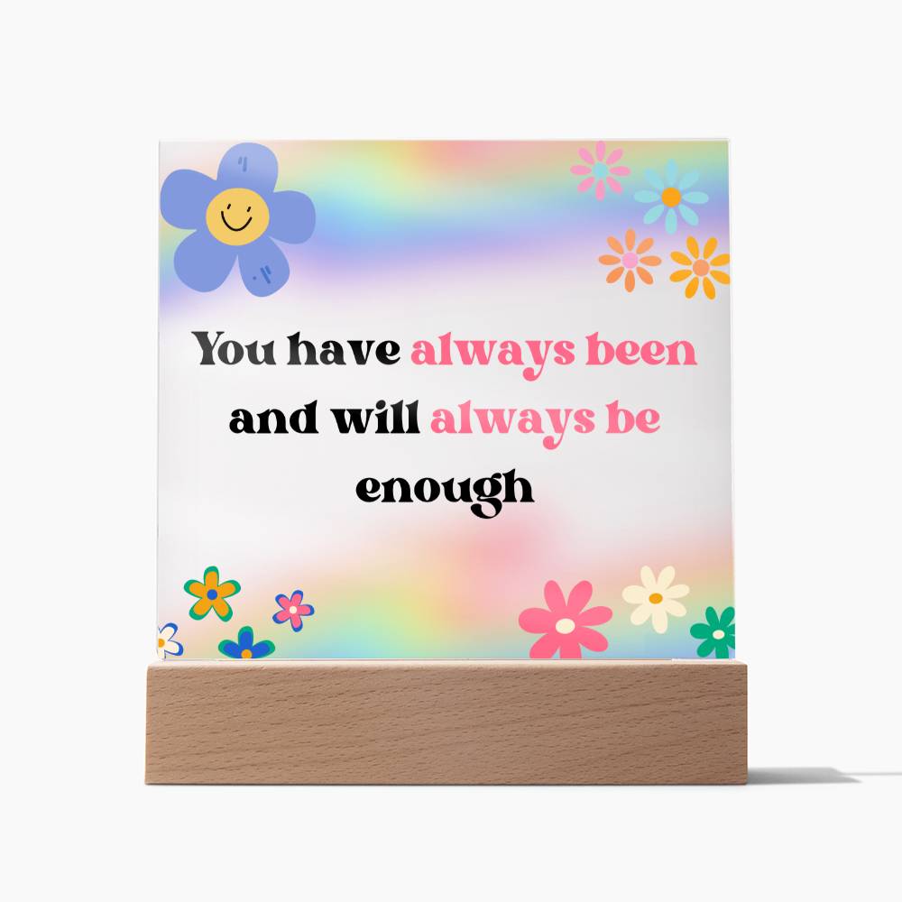 Brighten up a kids playroom or classrom with this adorable "You have always been enough" Square Acrylic Plaque!